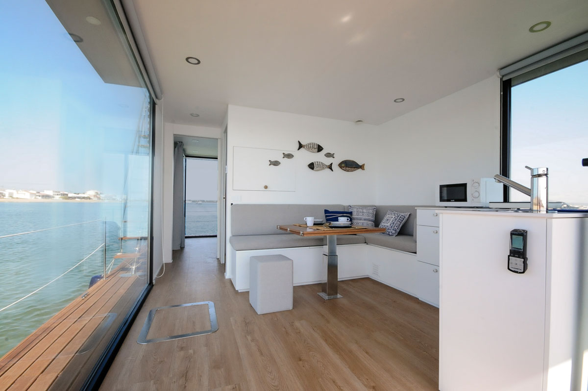 Devido ao seu design inspirado nos modelos da Europa do norte, a embarcação assemelha-se mais a uma casa do que a um barco. No seu interior, os clientes dispõem de um quarto com cama de casal, WC e sala com kitchenette, que pode facilmente ser convertida num quarto extra. No primeiro piso, existe um terraço onde os clientes podem relaxar e apanhar banhos de sol.