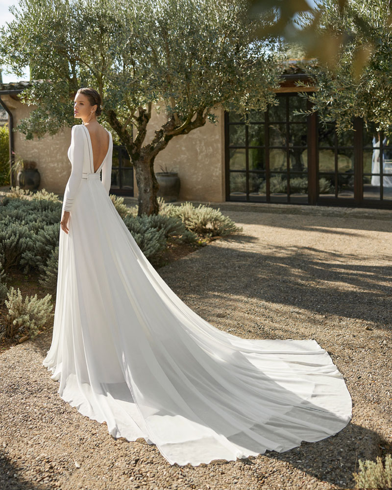 A coleção 2023 AIRE BOHO continua fiel à sua inspiração na magia da natureza para apresentar designs que se caracterizam pela sobriedade de linhas e os detalhes muito elaborados e que, nesta coleção, acrescentam um TOQUE DE SENSUALIDADE. A assinatura aposta em vestidos retos de crepe elástico ou georgette com incrustações de renda ou entredoses que se atualizam com DECOTES QUADRADOS ou caicai, ou com umas originais mangas para um look de noiva diferente. As noivas mais sonhadoras vão apaixonar-se pelos vestidos com vaporosas saias em A ou capa com volume na bainha realizadas em georgette, voile, tule suave ou organza, um dos tecidos protagonistas da temporada. Usam-se com corpos com estrutura corpete decorados com RENDAS ORGÂNICAS que se rejuvenescem pelas aberturas em lágrima nas costas, o decote halter ou as mangas removíveis abalonadas que permitem ter dois looks. Esta temporada, Aire Boho também se atreve com a SEREIA DE RENDA MATE com motivos geométricos para divergir da imagem mais provençal. É um look sereia diferente que pode complementar-se com saias compridas ou mangas removíveis para maior versatilidade. |