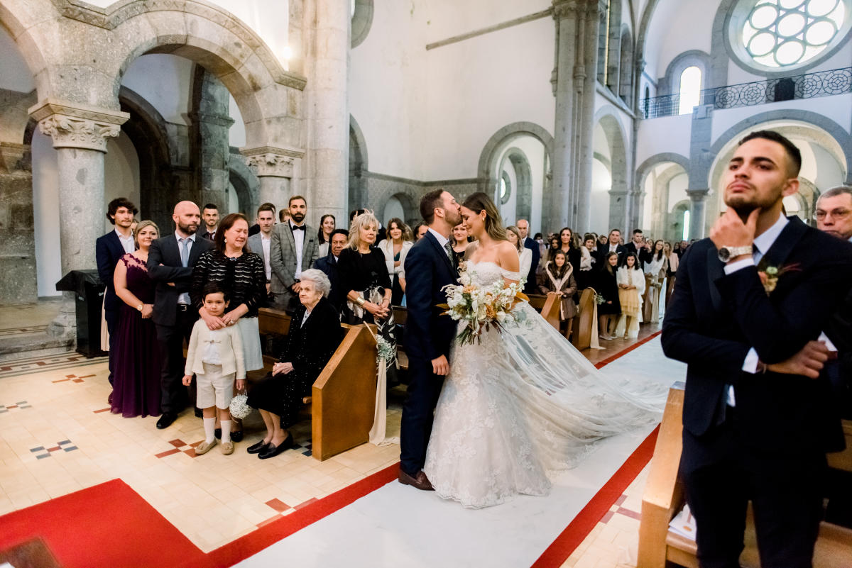 Nenhuma noiva idealiza ter chuva no seu dia de casamento, certo? Acreditem, ou não, apesar de no nosso dia ter chovido intensamente, principalmente na nossa entrada na igreja e durante toda a cerimónia religiosa, não deixamos que isso nos afetasse minimamente.