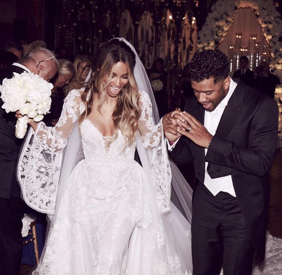 Ciara e Russel Wilson (quarterback da equipa de futebol americano Seattle Seahawks) não olharam a despesas no momento de dizer “sim”.