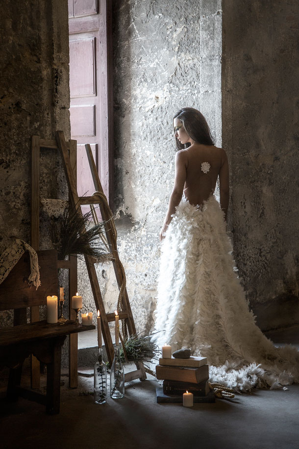 Longe da multidão, ela caminha até às profundidades da sua individualidade para ver surgir, diante de si, a aparição de uma noiva sem medo de dizer “sim” à insolência dos audazes.