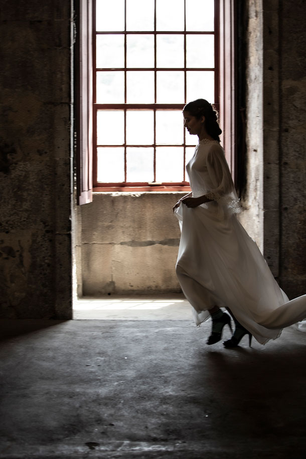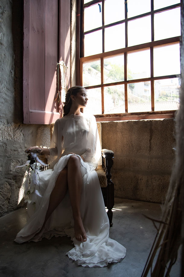 Sozinha, num universo só seu, a noiva dá um passo em frente até ao sonho.