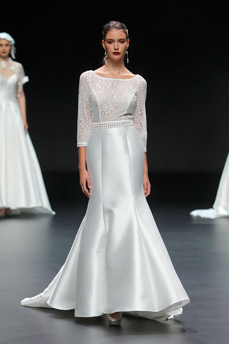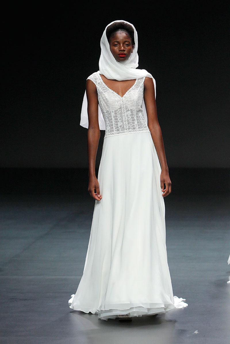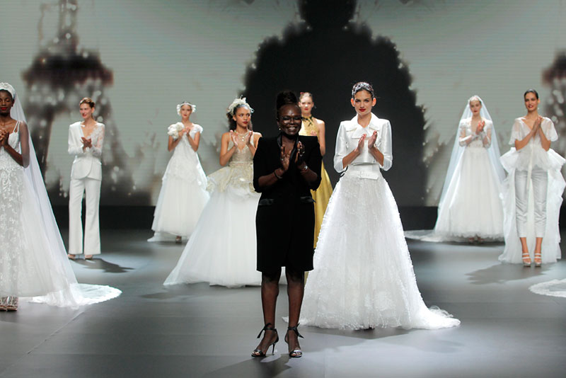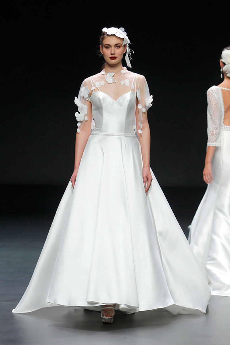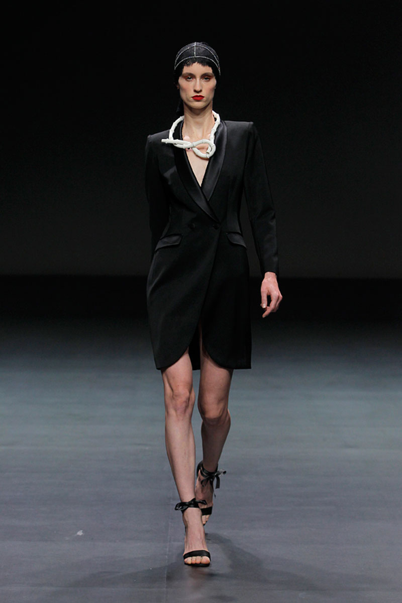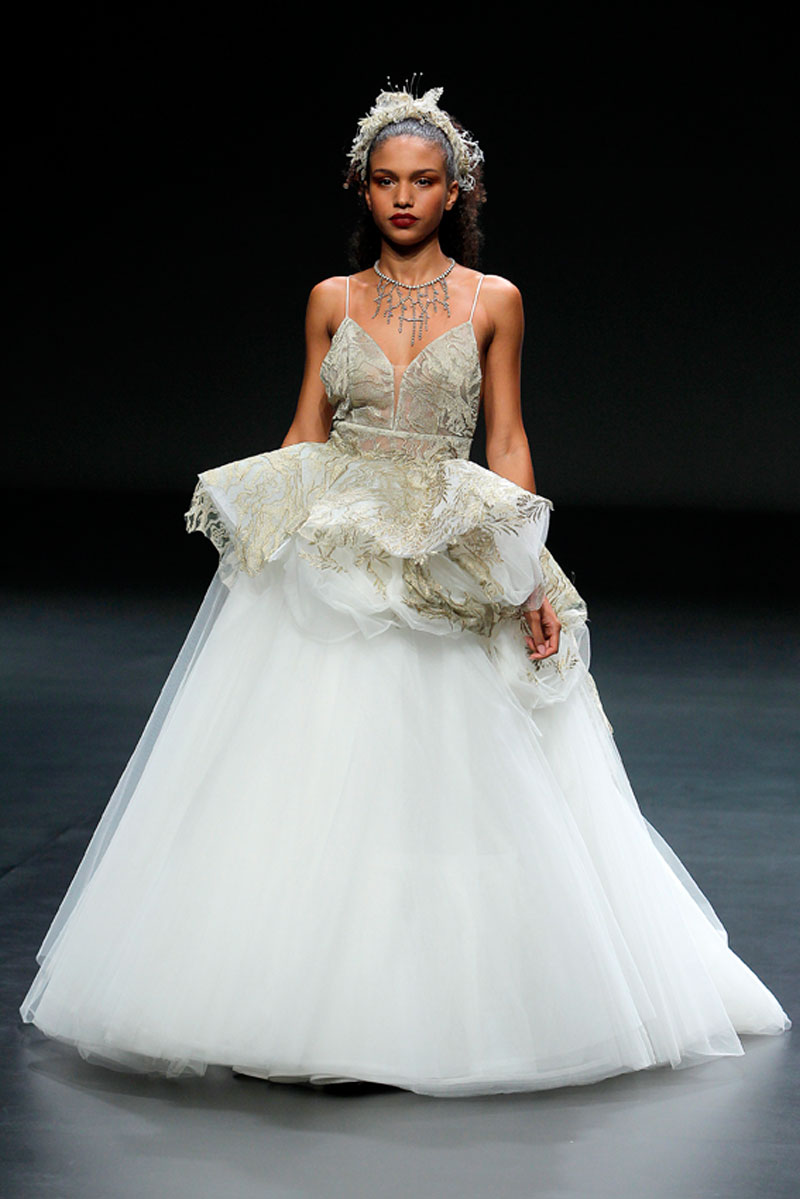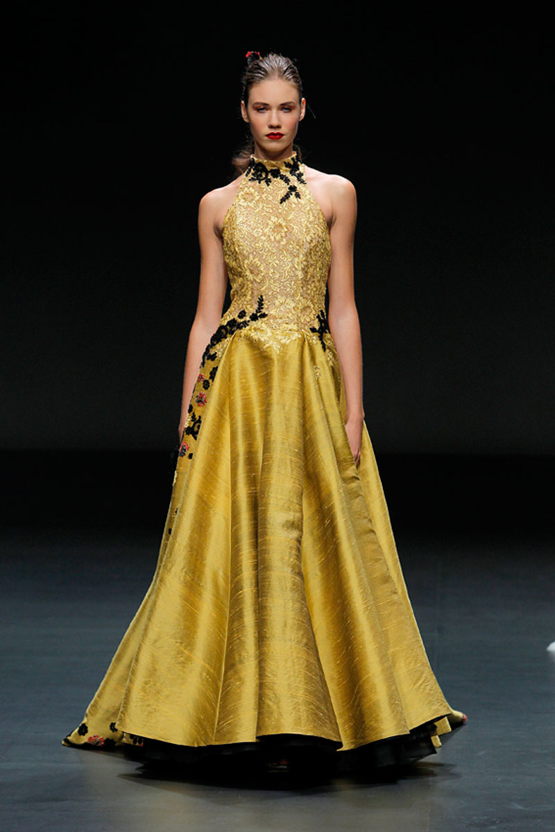 A Haute Couture revela-se através do recurso a fios brilhantes que conferem uma profundidade subtil a materiais como a organza, o tafetá e a renda.