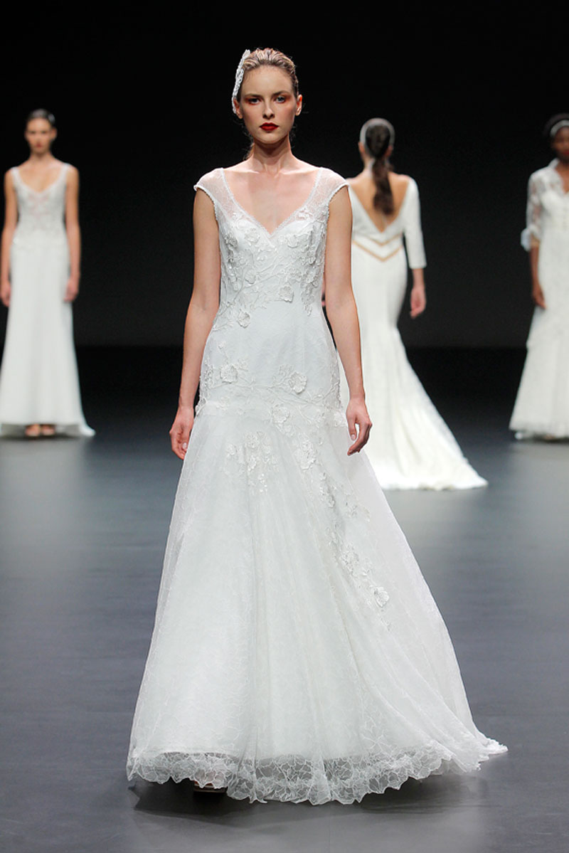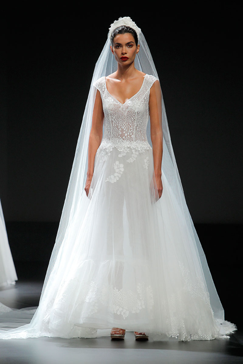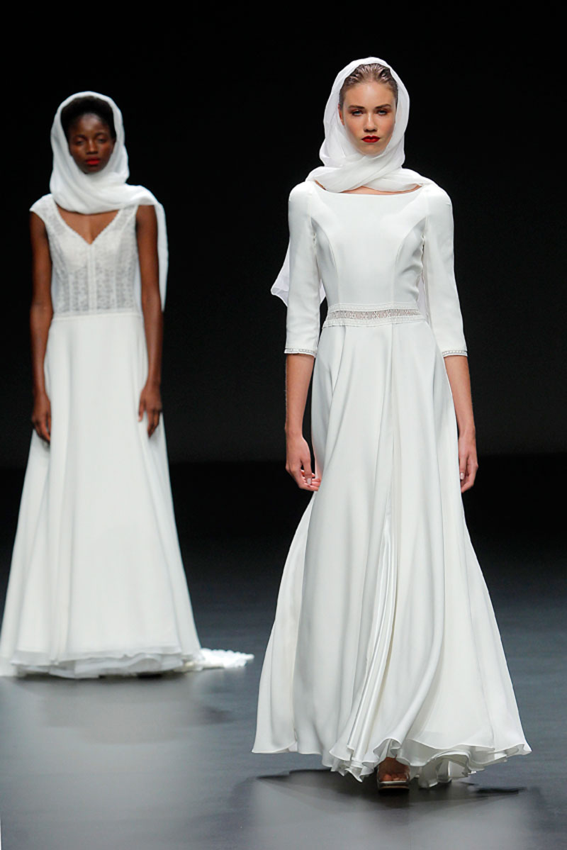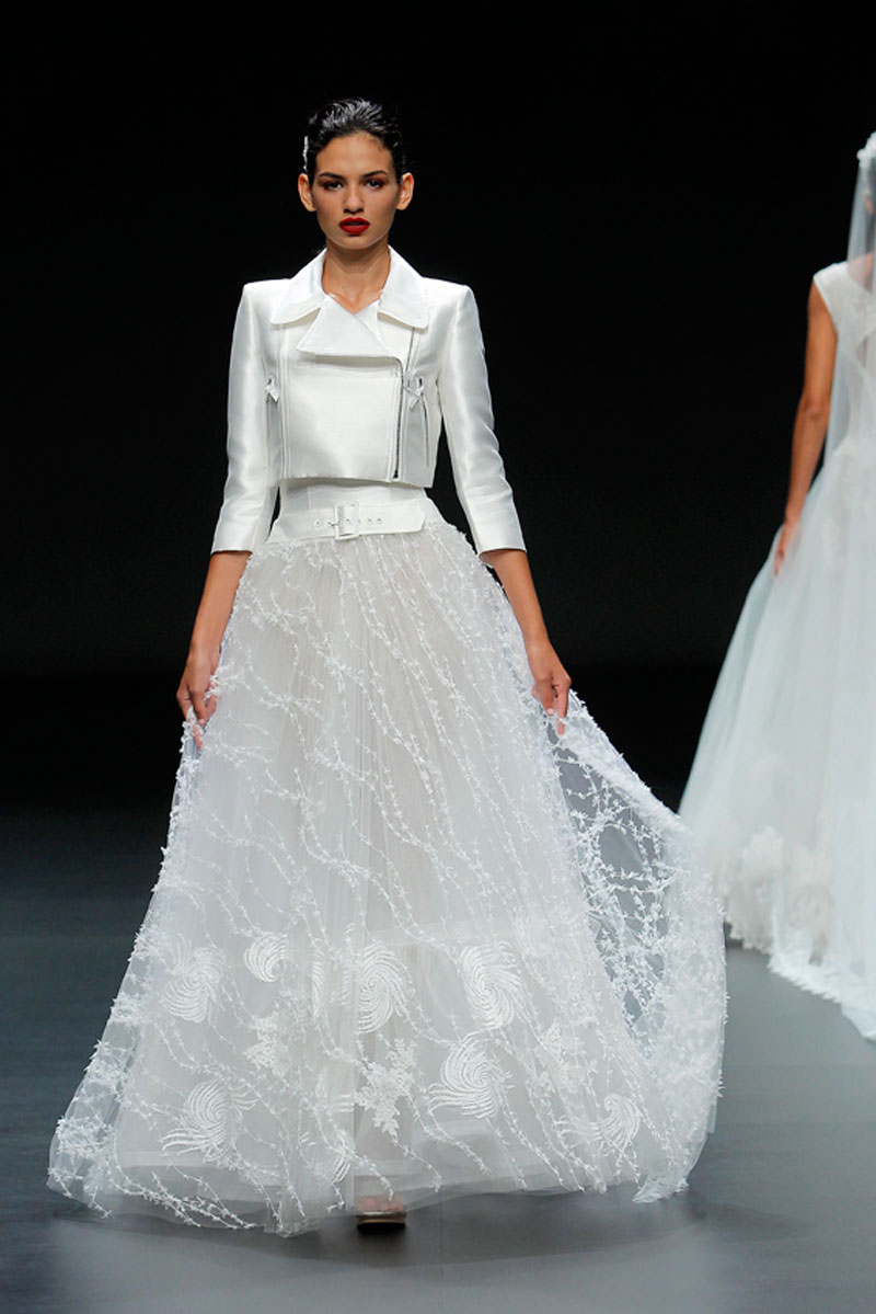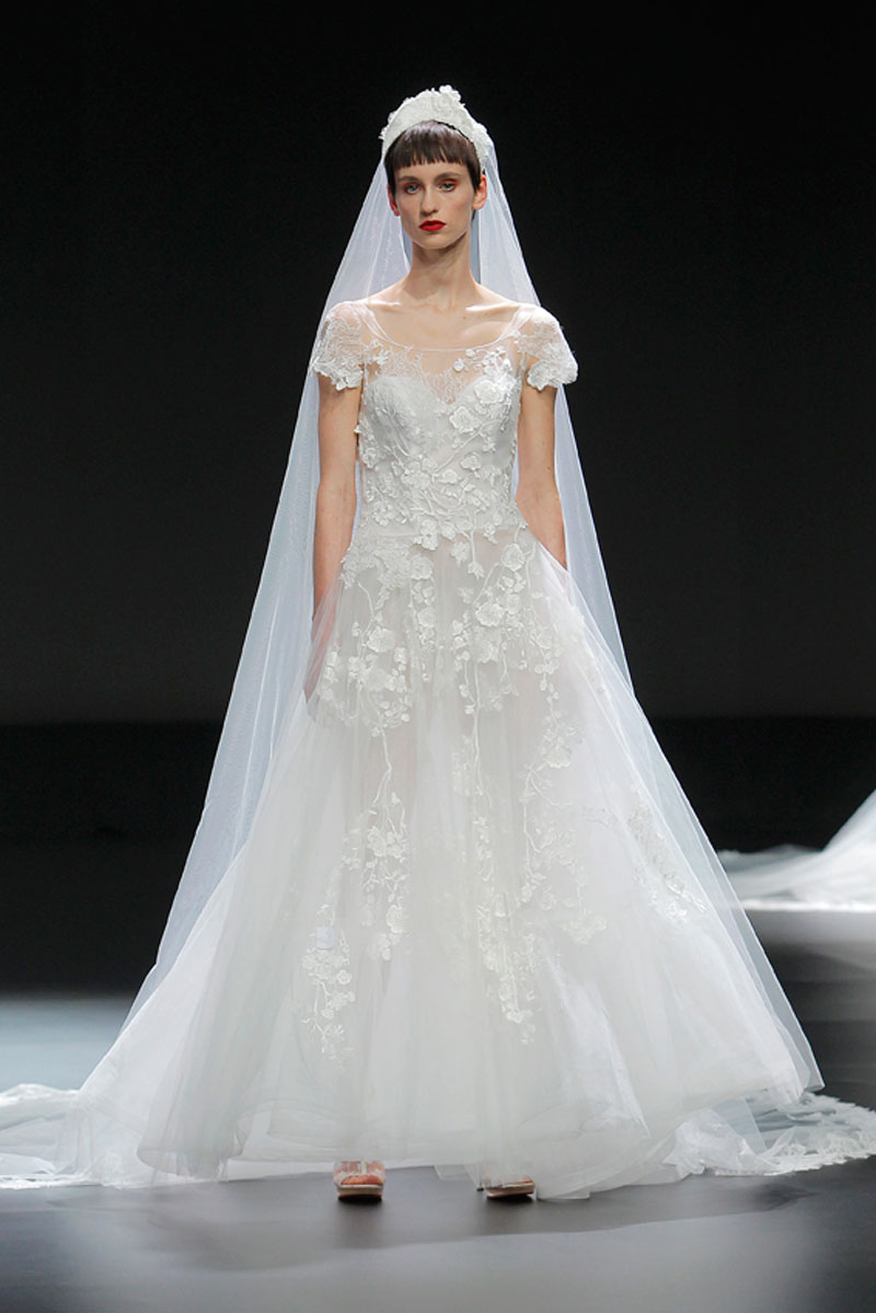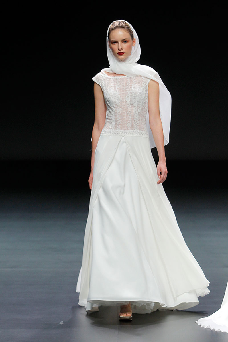 A Haute Couture revela-se através do recurso a fios brilhantes que conferem uma profundidade subtil a materiais como a organza, o tafetá e a renda.