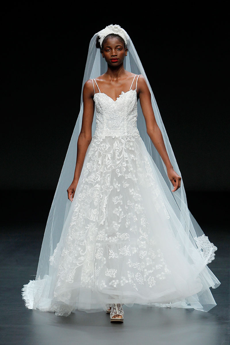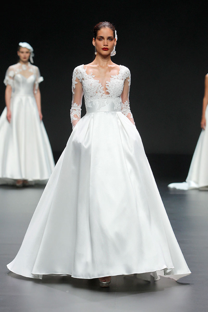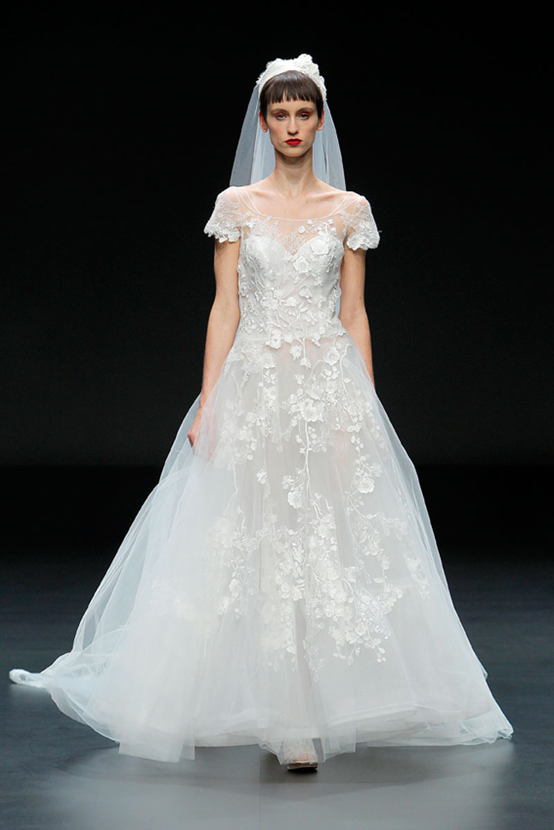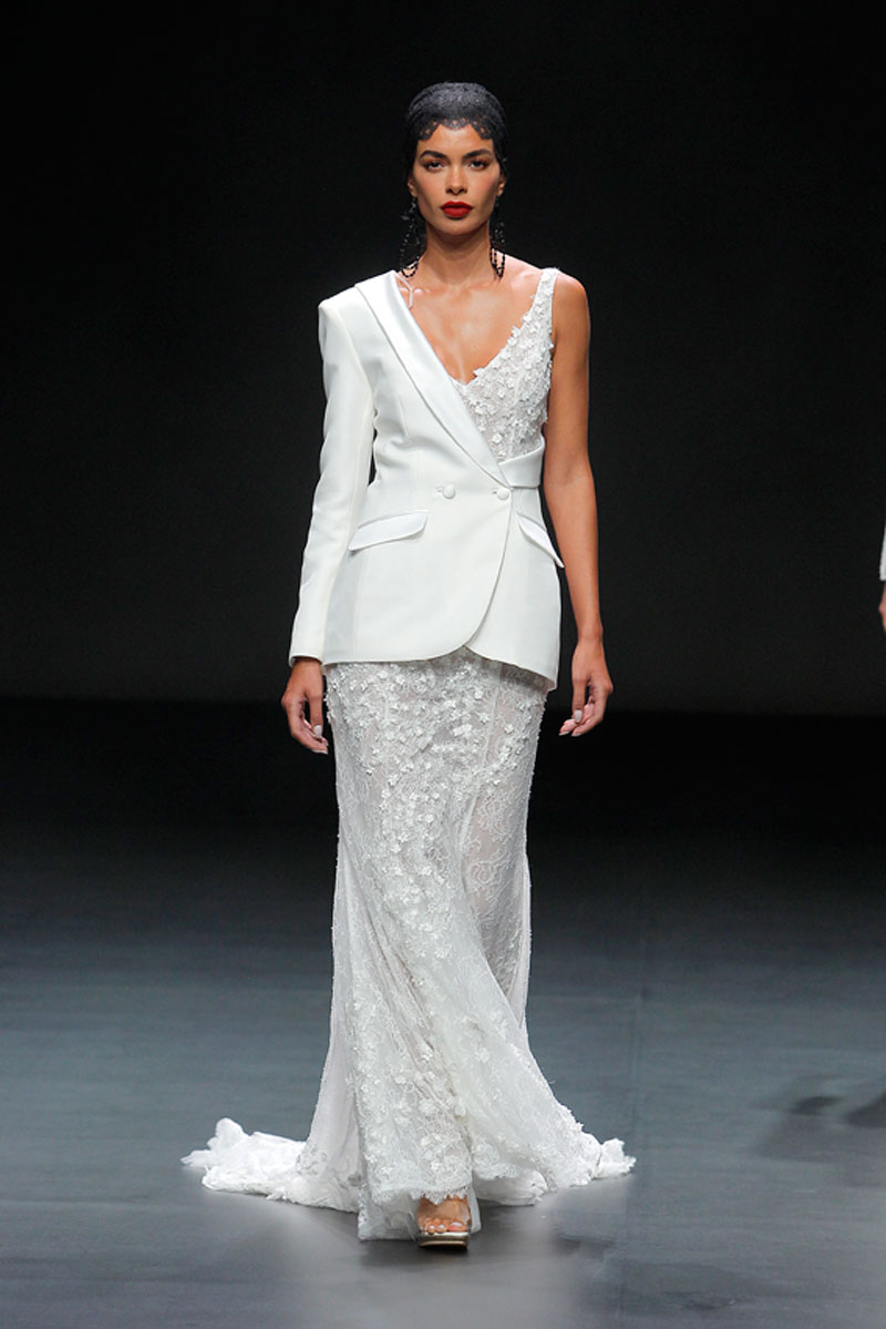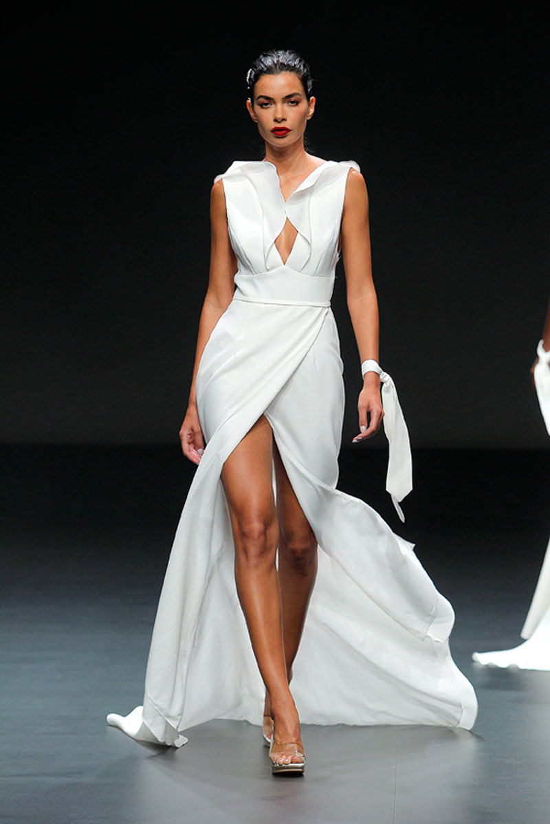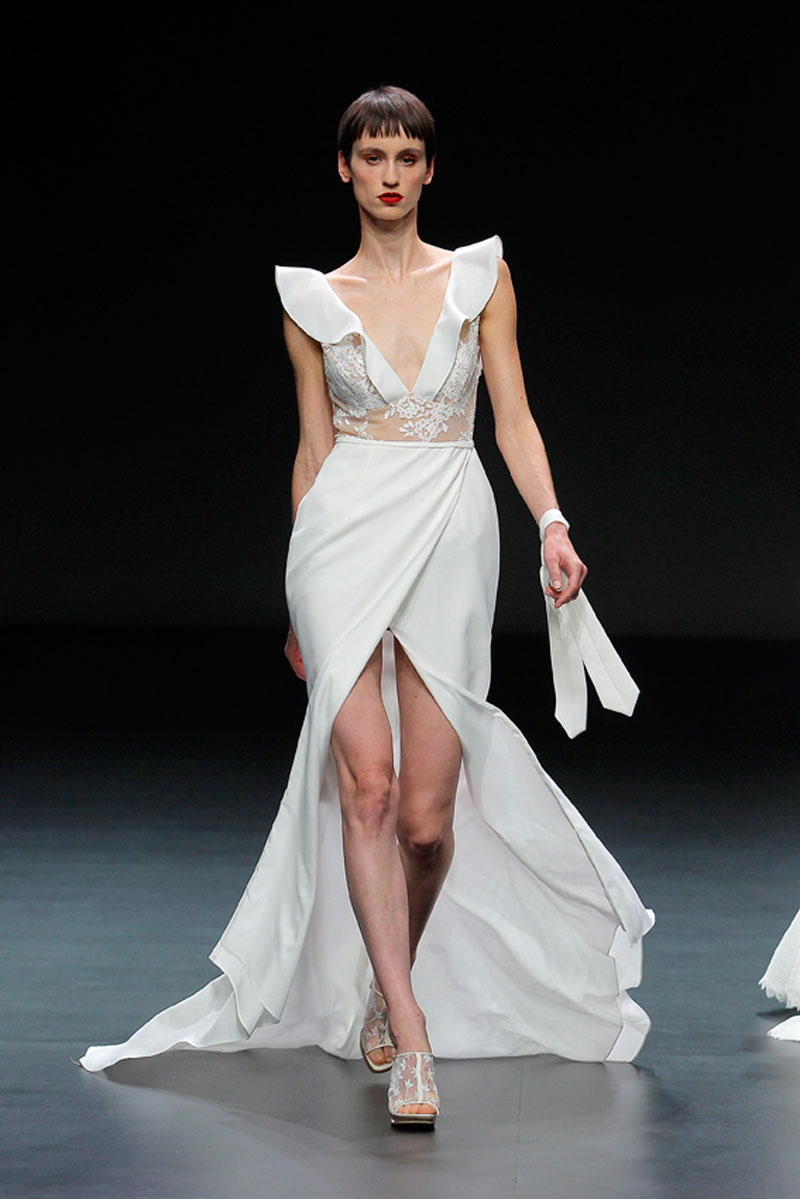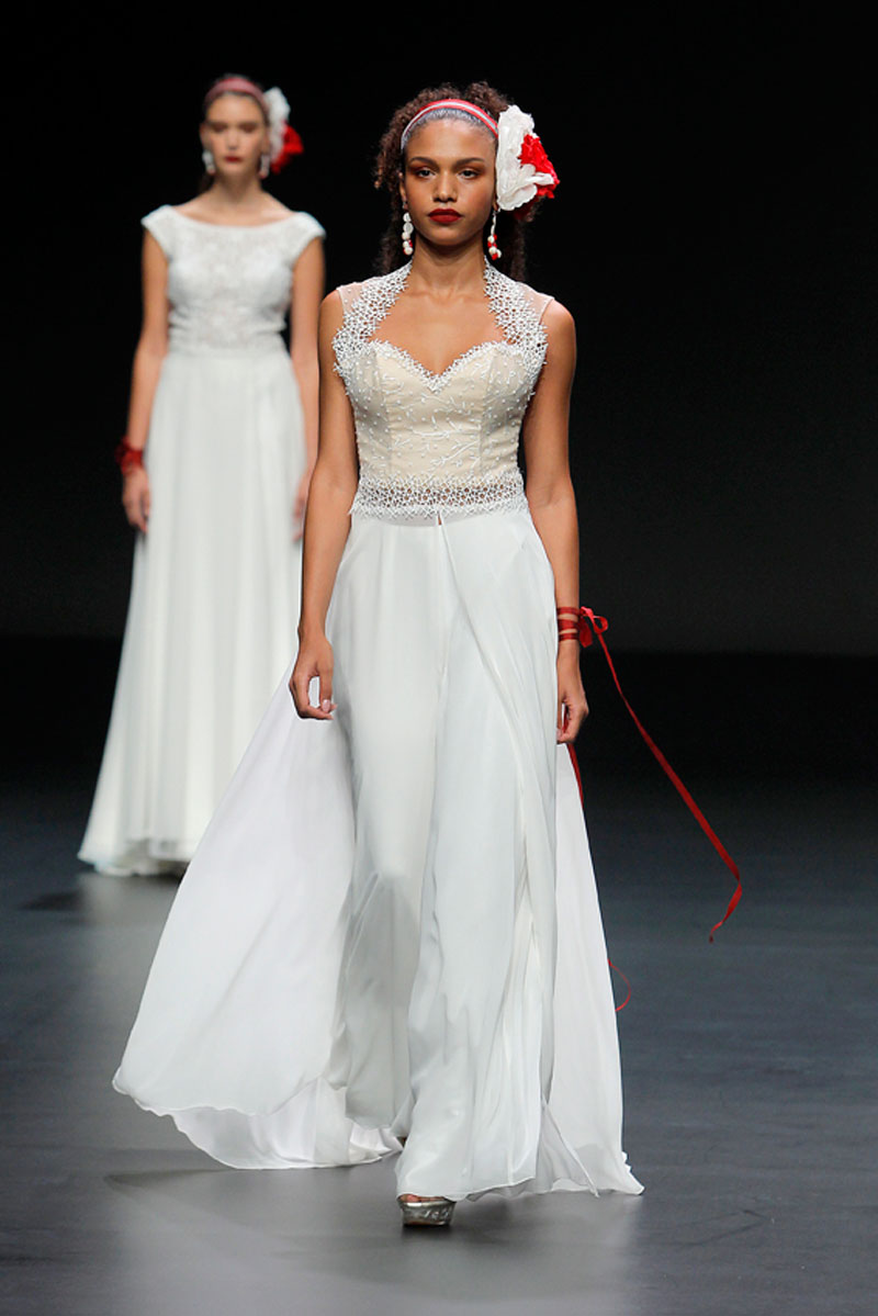 A Haute Couture revela-se através do recurso a fios brilhantes que conferem uma profundidade subtil a materiais como a organza, o tafetá e a renda.