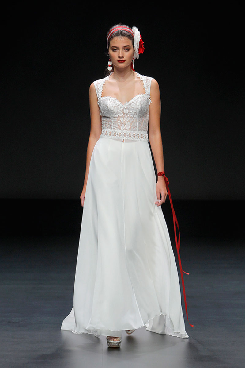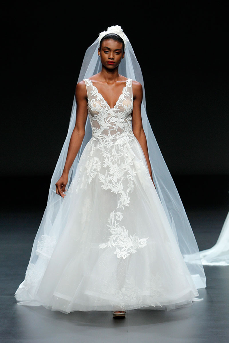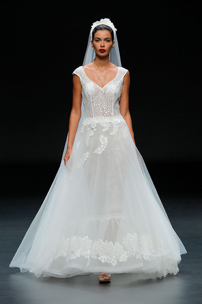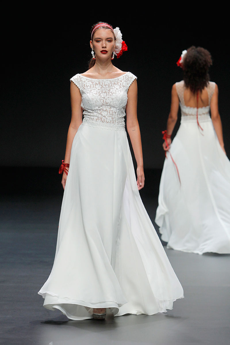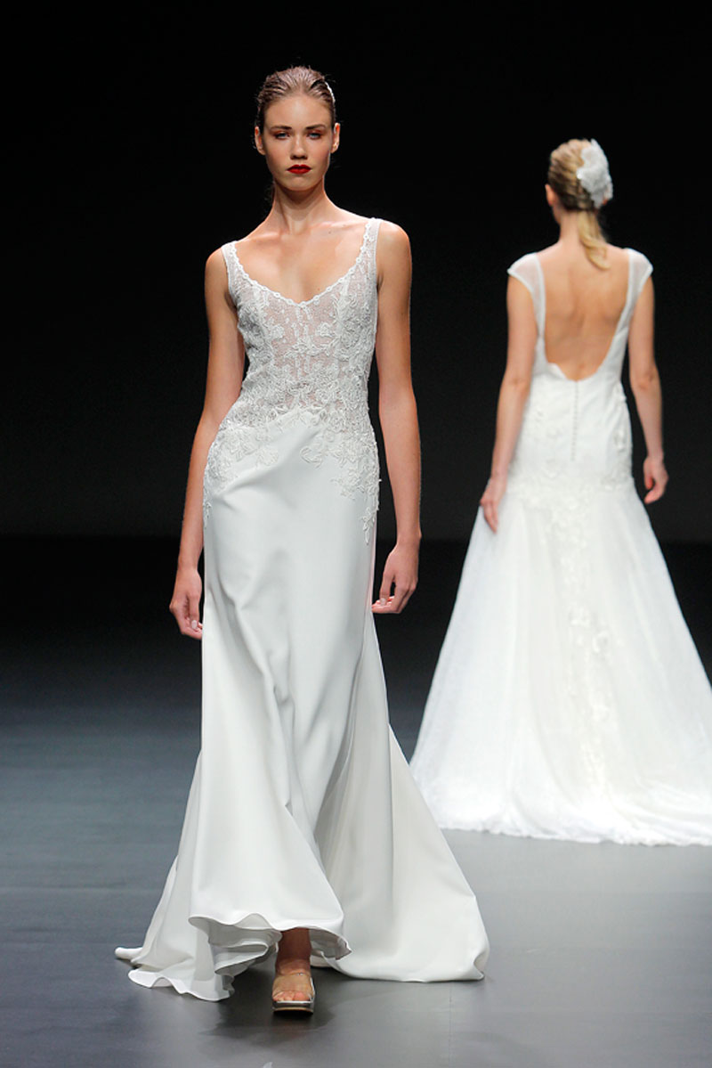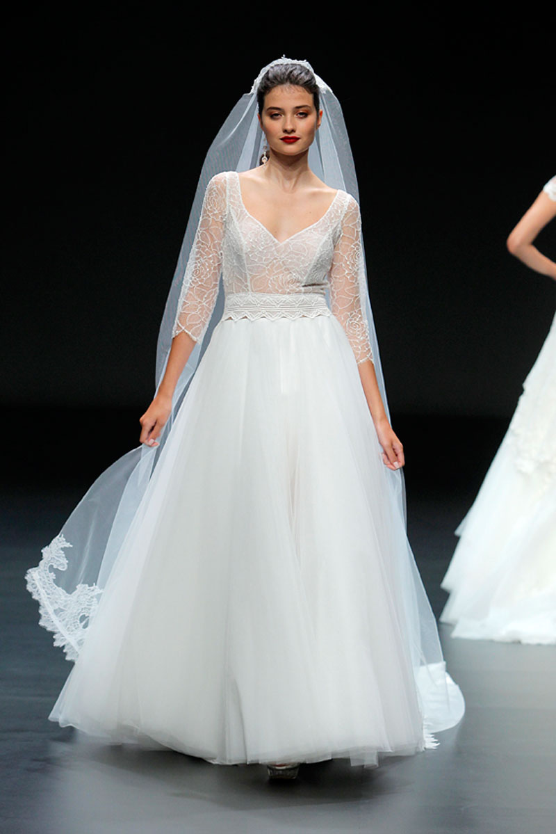 A Haute Couture revela-se através do recurso a fios brilhantes que conferem uma profundidade subtil a materiais como a organza, o tafetá e a renda.
