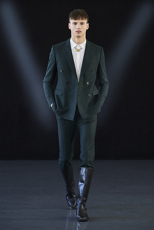 No desfile, o estilista Miguel Vieira protagoniza a lã, caxemira, alpaca e lurex como materiais capazes de enaltecer a confiança de quem os usa. Predominaram as cores azul medieval, preto caviar e verde inverno que, em conjunto com as silhuetas clássicas e geométricas, realçam as linhas puras e apelam à liberdade de género na moda.