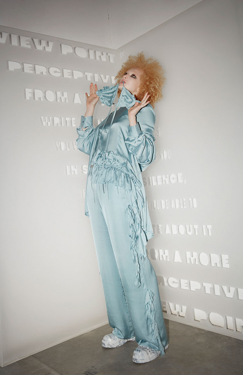 As referências desta coleção remontam aos anos 90, época em que a identidade da estilista surgiu, e a inspiração para esta obra passa também pela influência da música e estética underground.