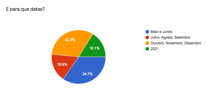 Relativamente às datas mais procuradas pelos noivos para a remarcação do “sim”, cerca de 16% preferiu dar o salto até ao ano 2021 e casar no último trimestre desse mesmo ano, visto que, por norma, os meses de verão (julho, agosto e setembro) já estão sobrelotados. Conclusão: o próximo ano irá ter vários casamentos de outono!