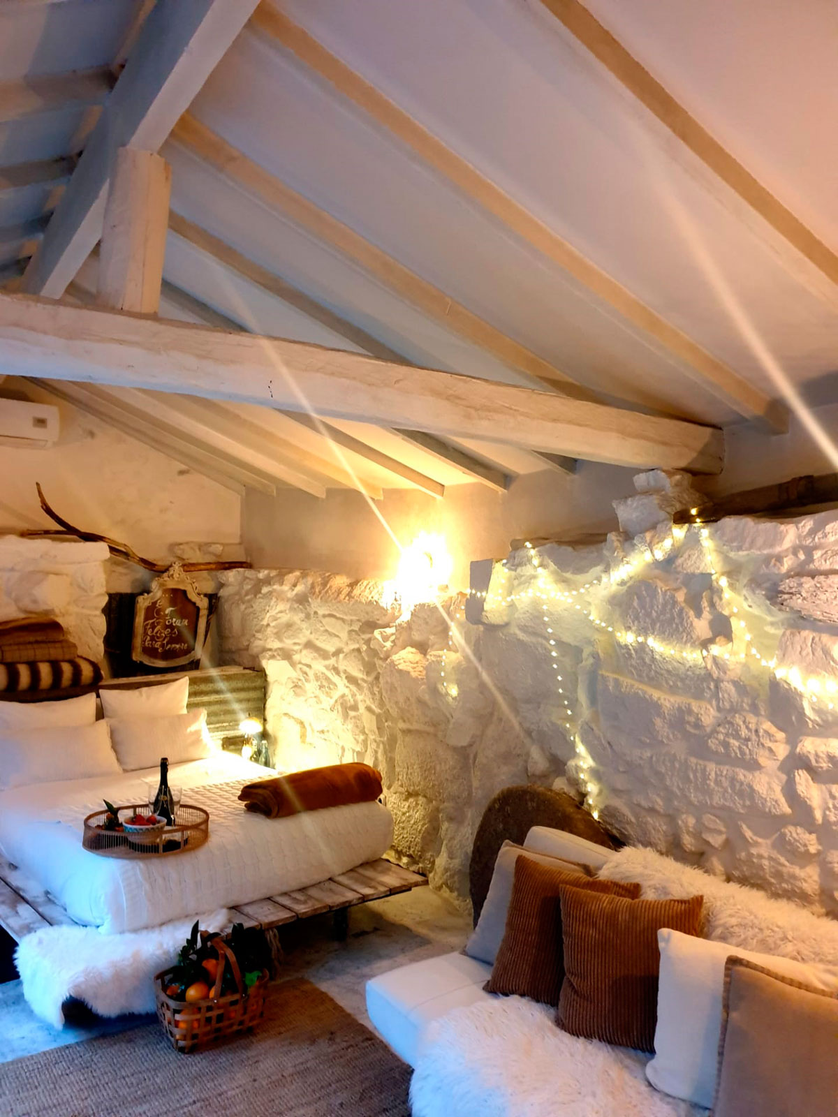 Cada suite tem uma atmosfera romântica, baseada na utilização de pedra natural e madeira, obras de arte originais, mobiliário e caraterísticas exclusivas, piso aquecido, cama exclusiva L´AND, TV LCD e Internet sem fios.