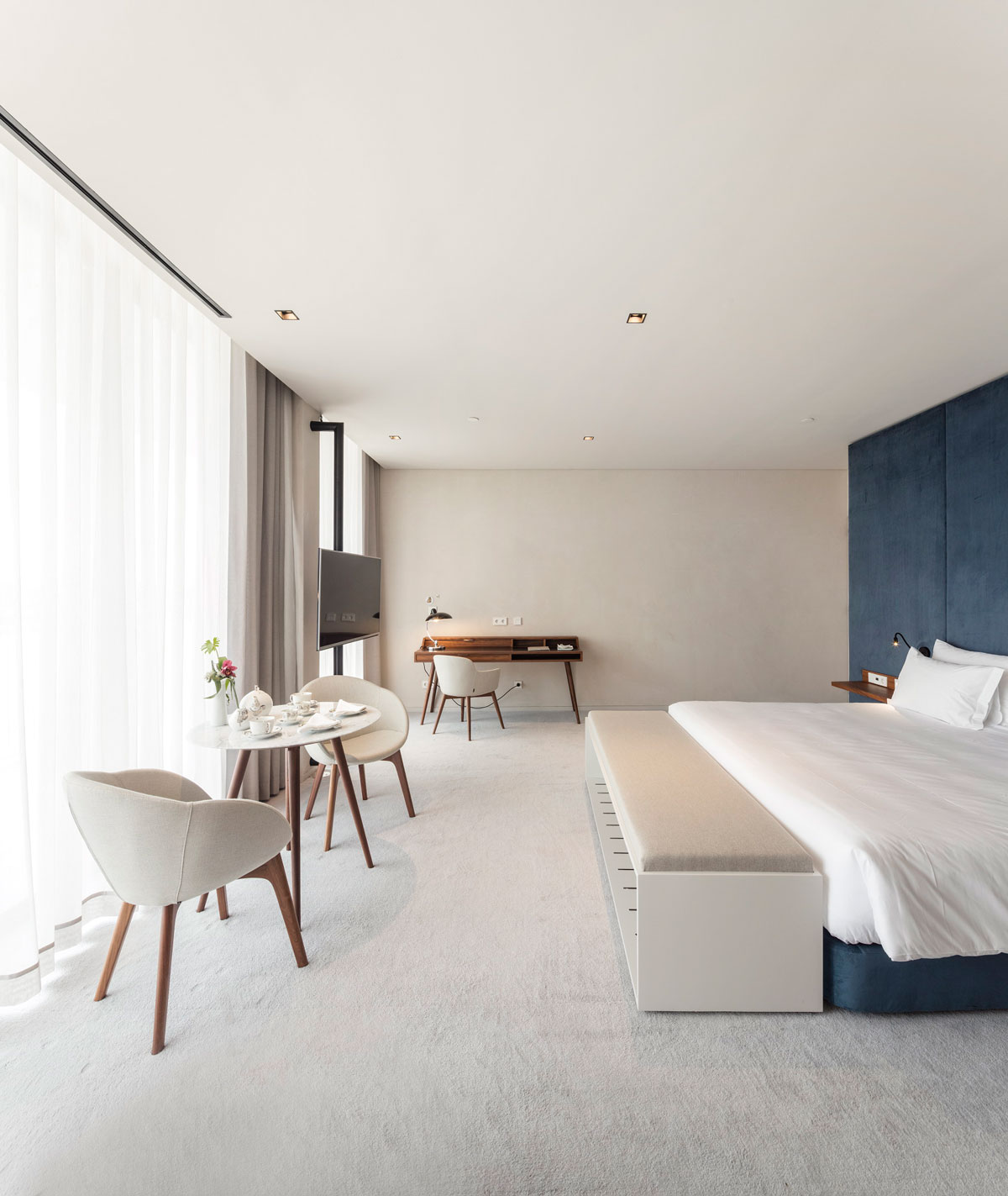Em cada quarto há uma separação entre a zona de dormir e a zona de estar, de forma a proporcionar uma grande amplitude de espaço e conforto. A utilização de mobiliário em madeira, os tons pastel e a iluminação natural oferecem uma atmosfera relaxante.