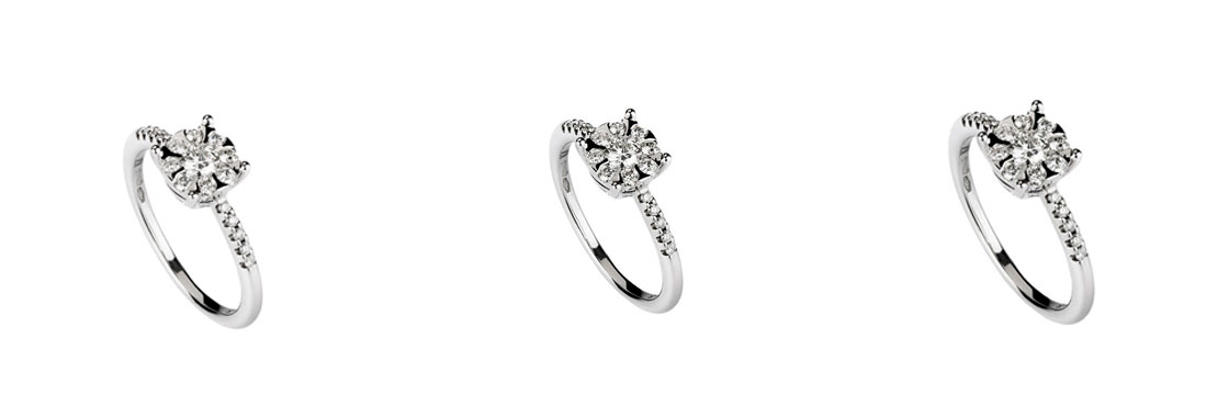 3. Conheça os vários tipos de anéis de noivado e todas as opções de cada um de forma a conseguir tomar uma decisão ponderadaCom uma infinidade de modelos, os 4 principais são: o solitário clássico, com um diamante no centro ou uma pedra preciosa de cor (coleção Solitário); o anel com diamantes no aro (que podem ocupar metade ou a totalidade da peça) (coleção Moments); o anel com um diamante no centro e diamantes à volta do diamante central e com a opção de diamantes no aro (coleção Promesse), ; e o anel em que o centro é formado por diversos diamantes parecendo um único diamante e que pode ou não ter diamantes no aro (coleção Romance). |