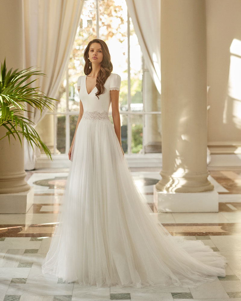 A noiva Aire Barcelona mais sexy ficará apaixonada pelos NOVOS VESTIDOS SIRENE, de crepe elástico e com forro moldador, com aplicações de renda na bainha. Os corpos apresentam-se muito sensuais, de renda e com decote caicai ou quadrado. Os amplos decotes nas costas atualizam o look, enquanto que a opção de os usar com CAPAS DE VÉU com aplicações de renda dá versatilidade a esta linha de vestidos. Por outro lado, a noiva mais coquete deixará seduzir-se pelos VESTIDOS MIDI com saia de tule ou tule suave, que se combinam com corpos em tendência pelos decotes quadrados, costas decotadas ou as delicadas mangas descaídas nos ombros, que conferem um toque de FEMINILIDADE CONTEMPORÂNEA.