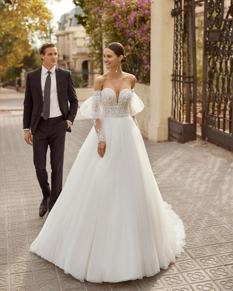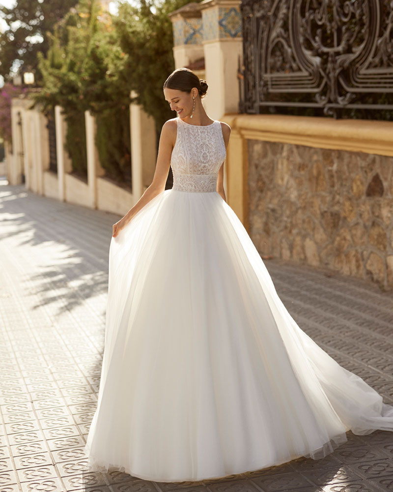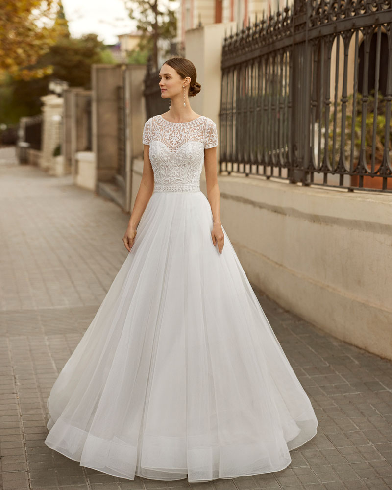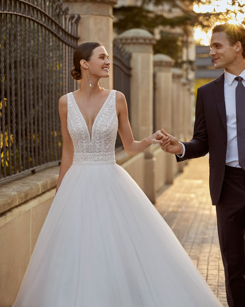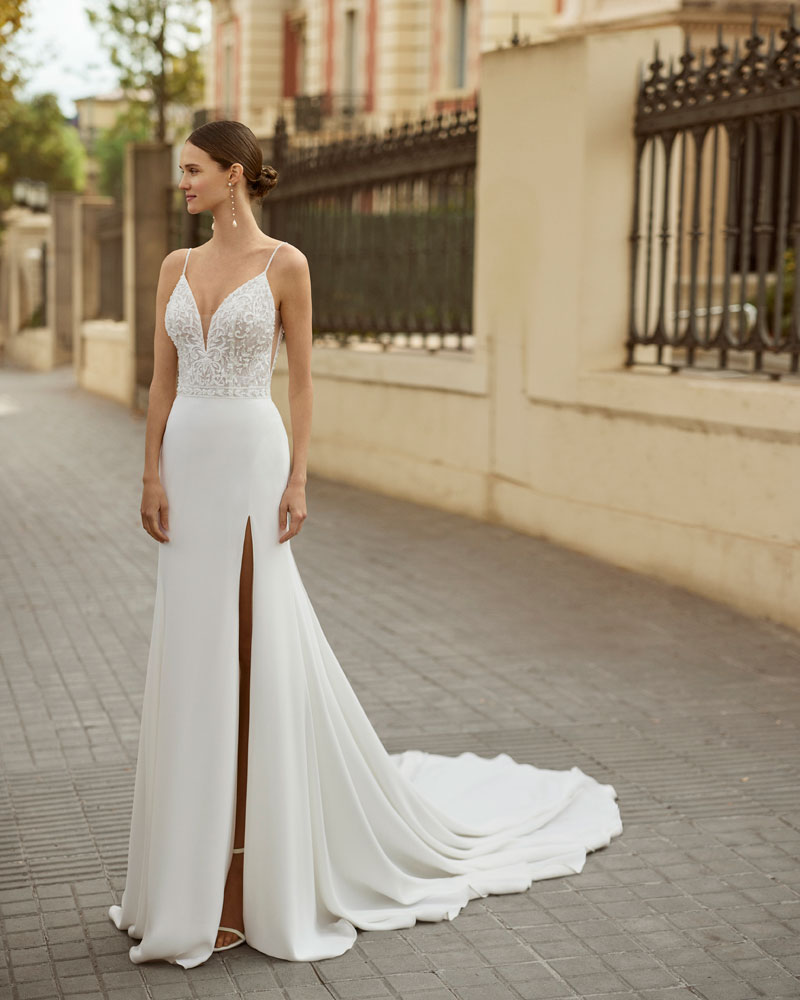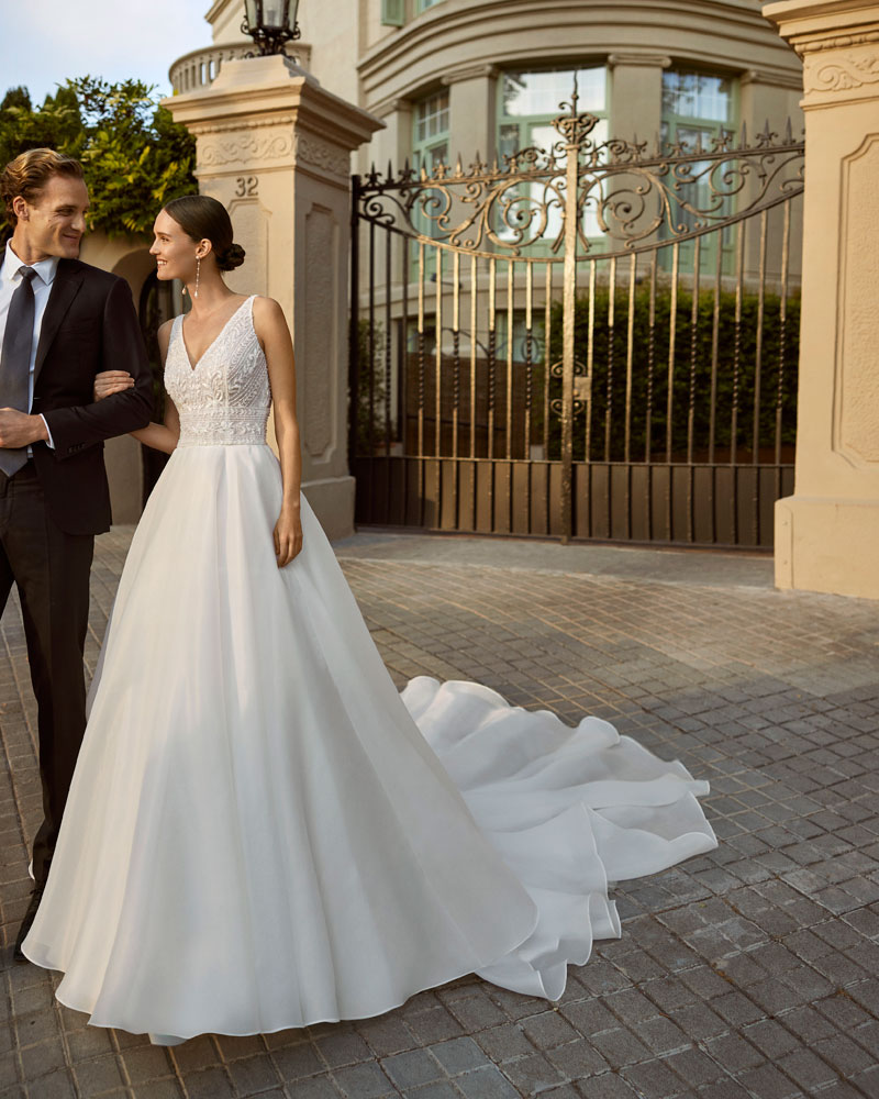 Fiel ao seu nome, a noiva AIRE DIAMOND está destinada a brilhar com vestidos com CORPOS MUITO ELABORADOS com rendas bordadas, aplicações e pedras que conferem luxo e refinamento. A assinatura propõe combiná-los com saias leves de georgette com sensuais aberturas, bem como com saias princesa de tule para um look de sonho. A versão mais urbana apresenta-se em silhueta reta com saia de crepe e um corpo com aplicações que procura a saia, com um efeito que estiliza o corte e oferece uma imagem muito cuidada e atual. |