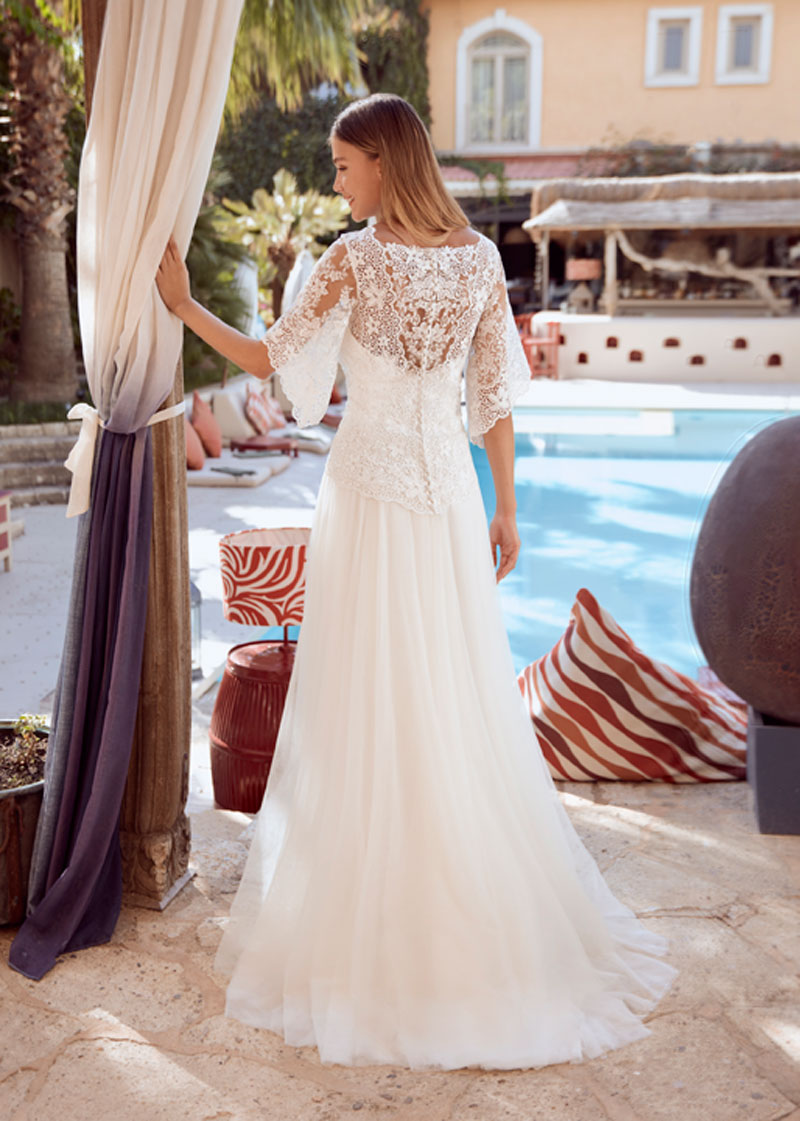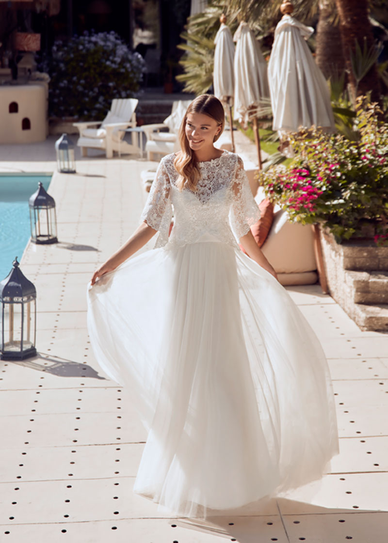 A coleção apresenta inúmeras escolhas, desde vestidos, saias, macacões em variadíssimos materiais para que os desejos das noivas, de se sentirem especiais e únicas, sejam concretizados.