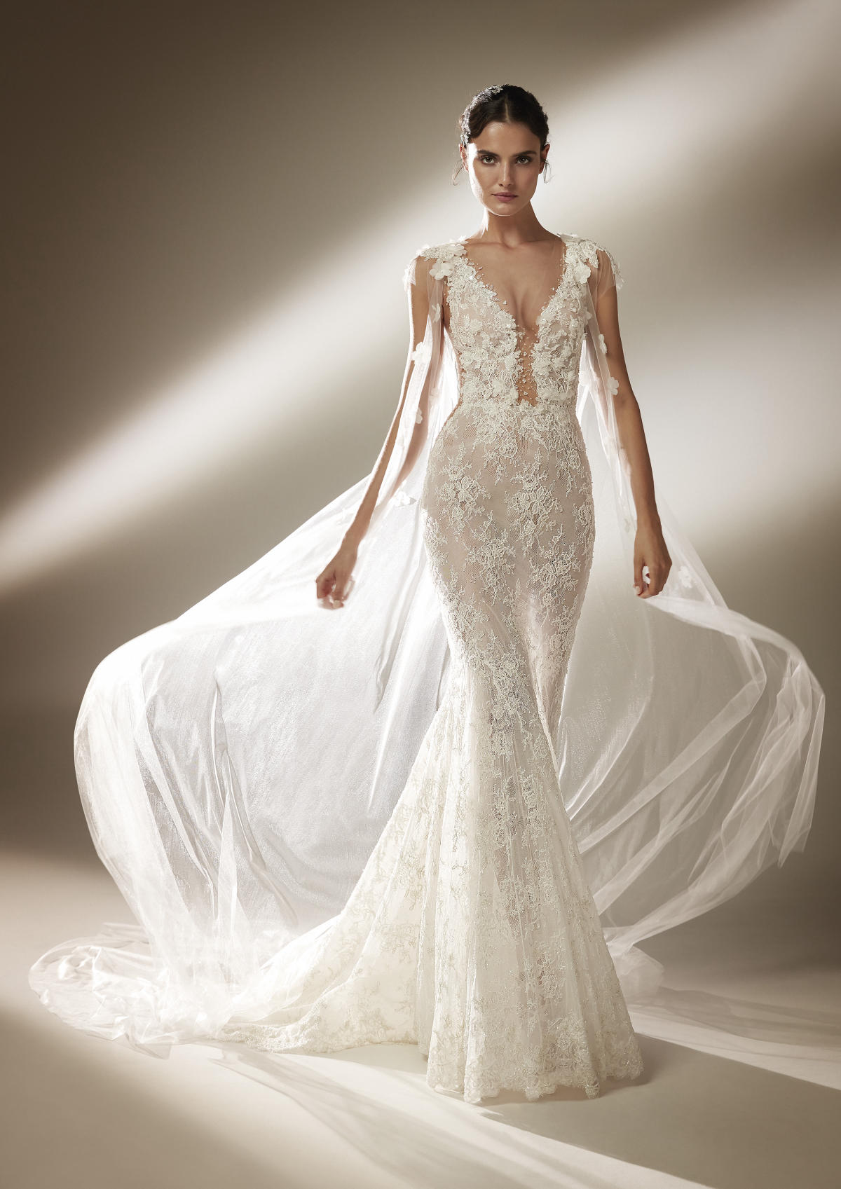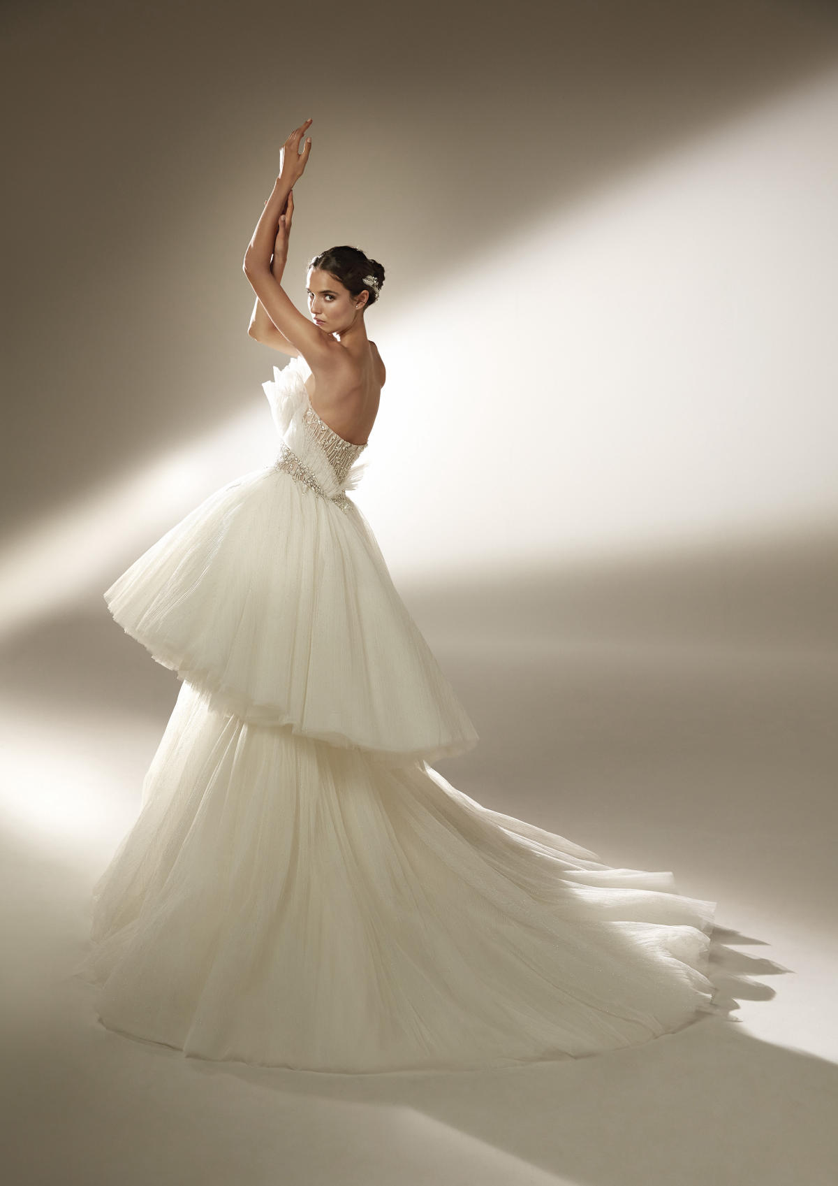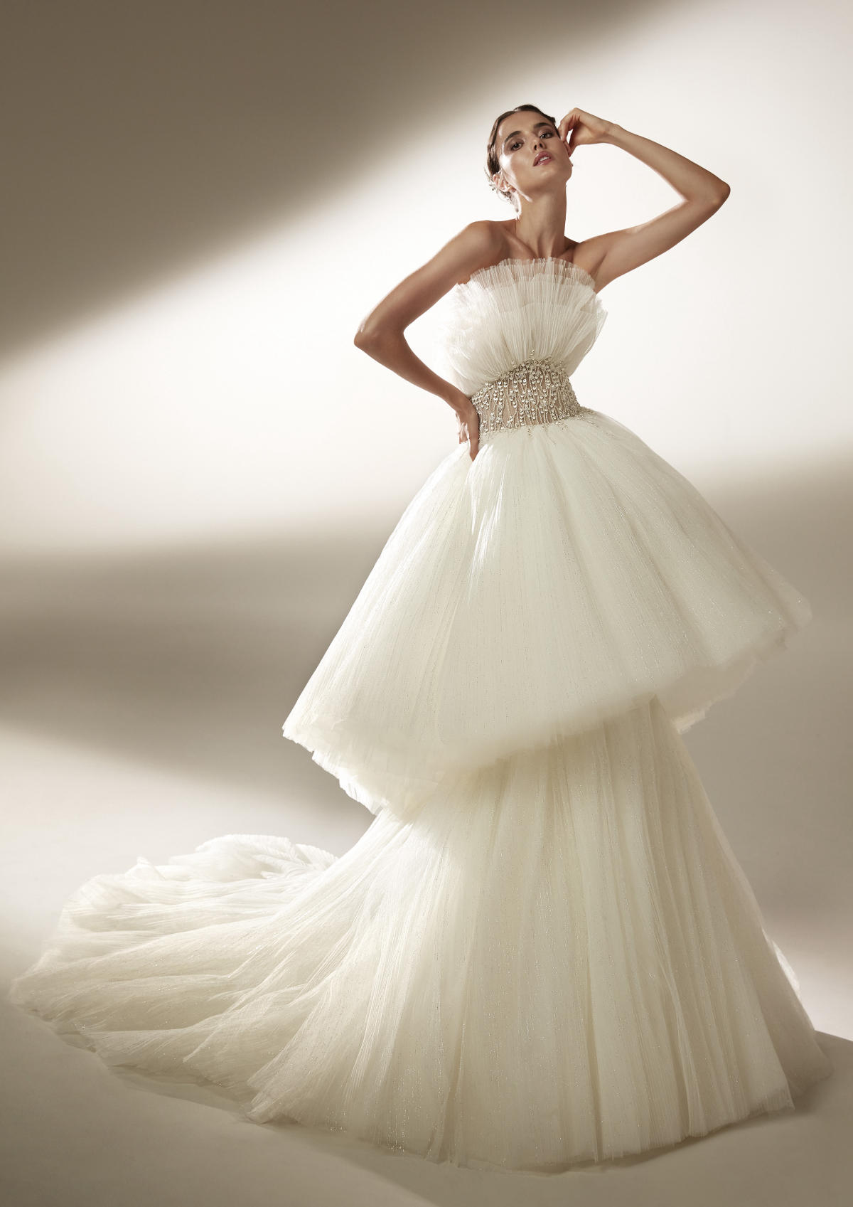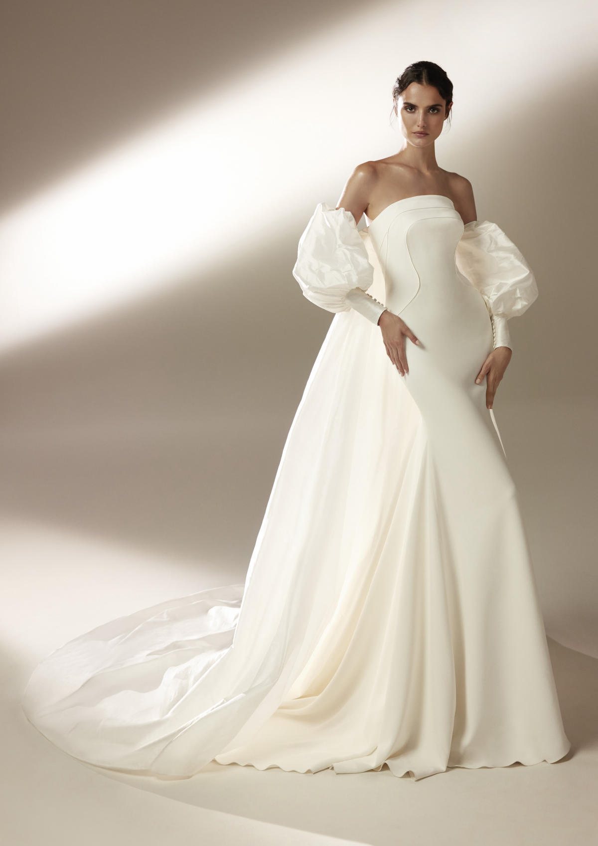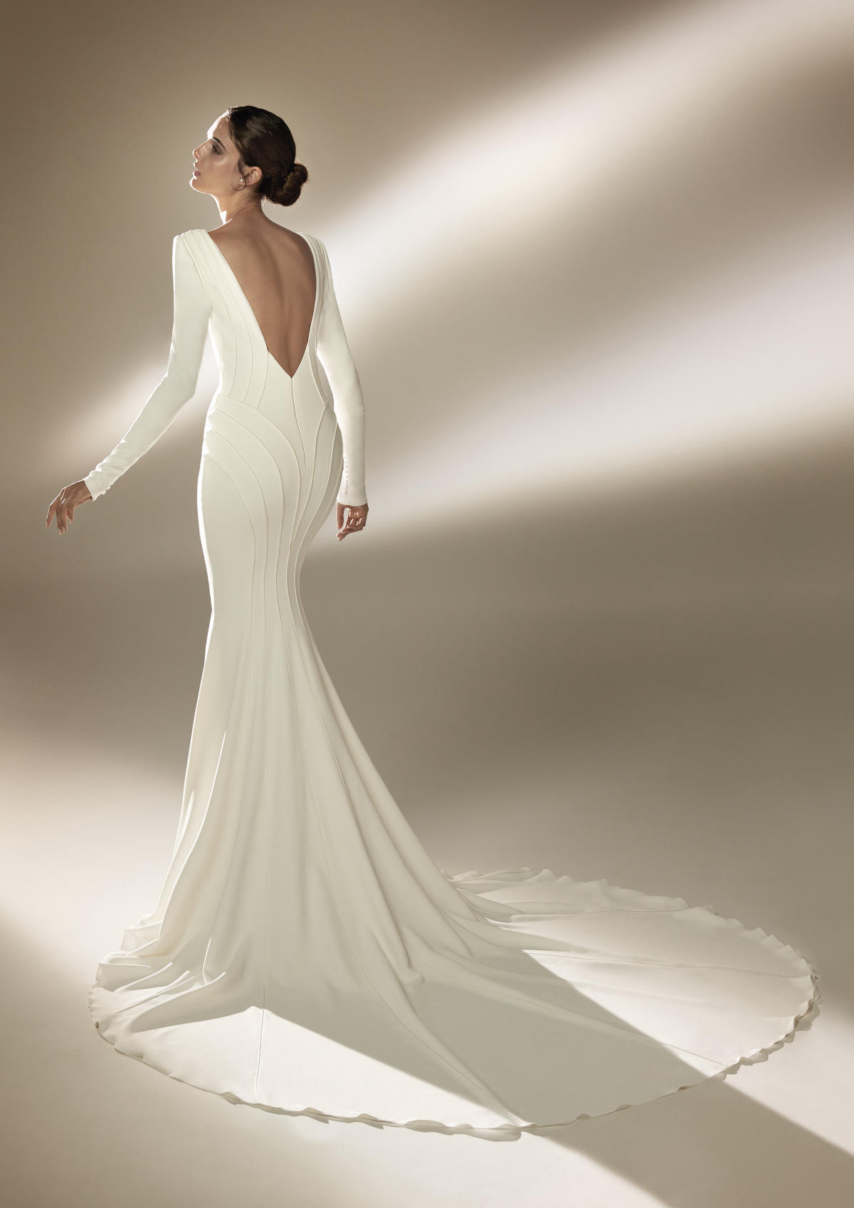 A coleção Pronovias 2021 pode ser definida em três palavras: pregas, mangas, joias.