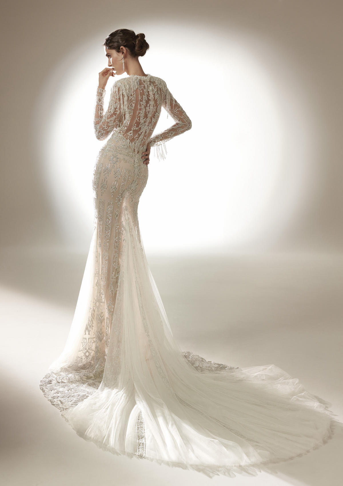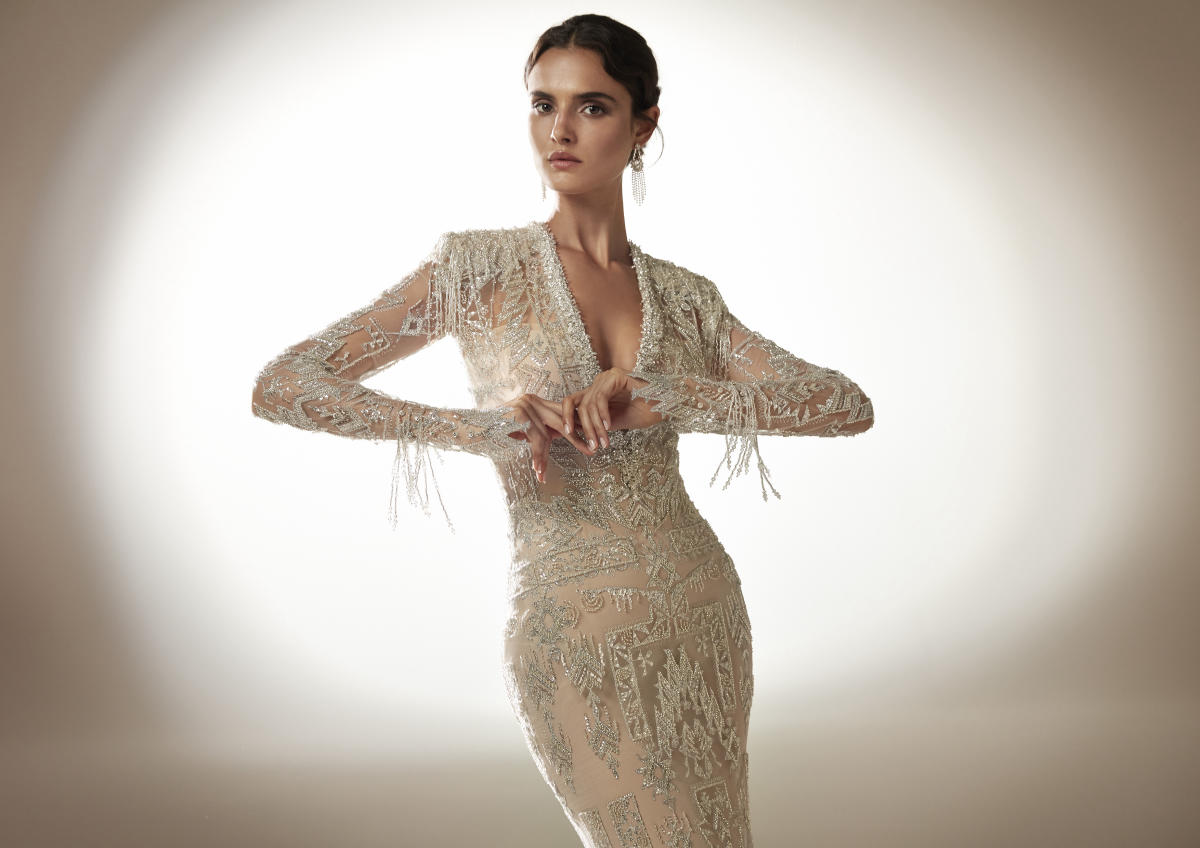 O estilo romanesco é alcançado graças à presença de bordados visualmente impressionantes que ganham um luxo extra com a ajuda de cristais geométricos, aplicações tridimensionais e padrões orgânicos.