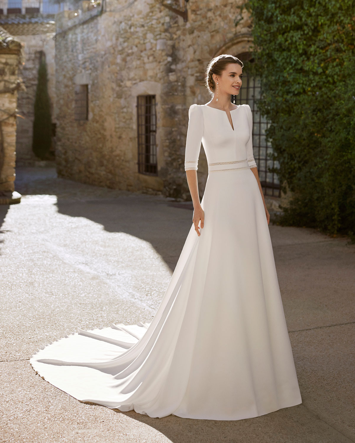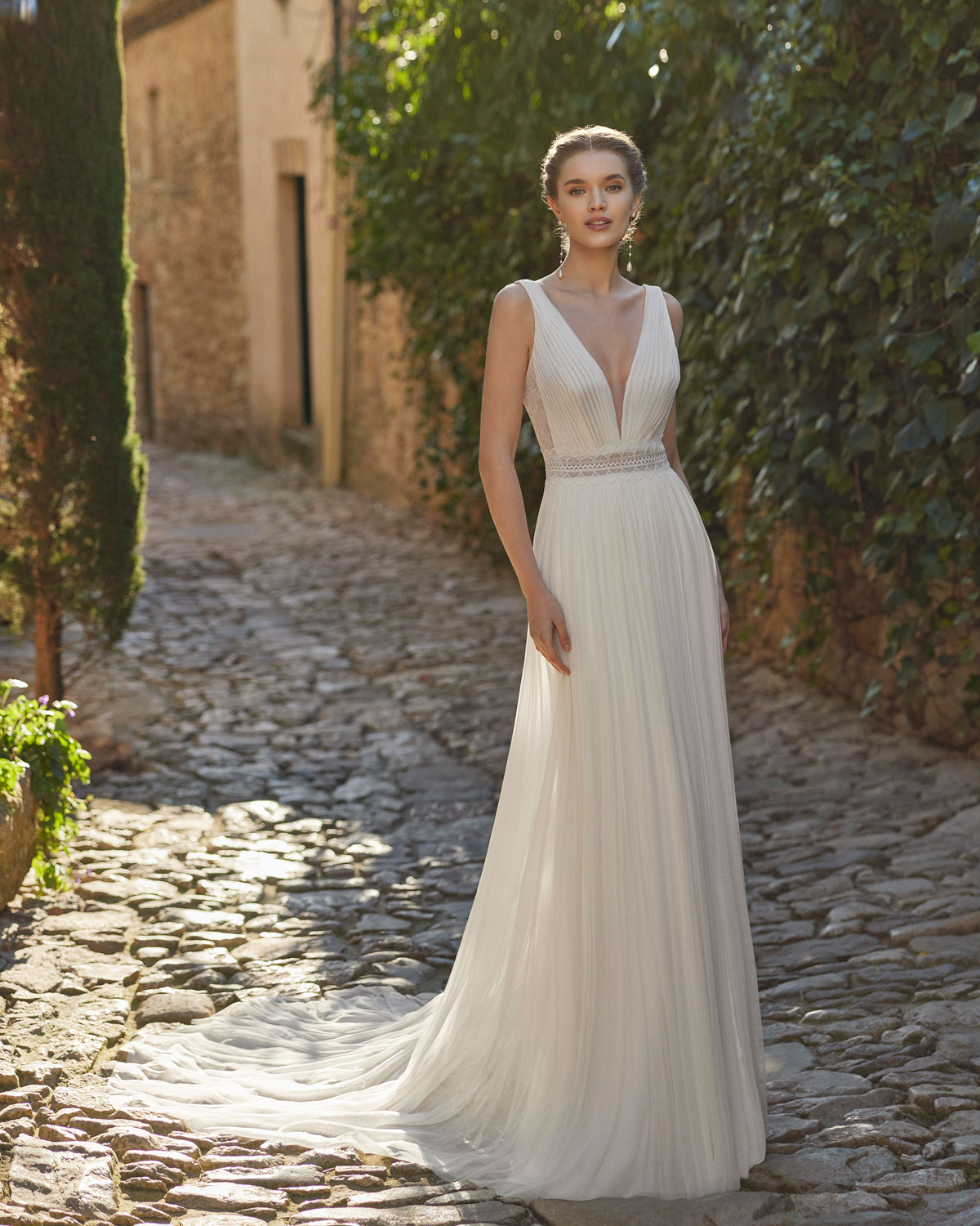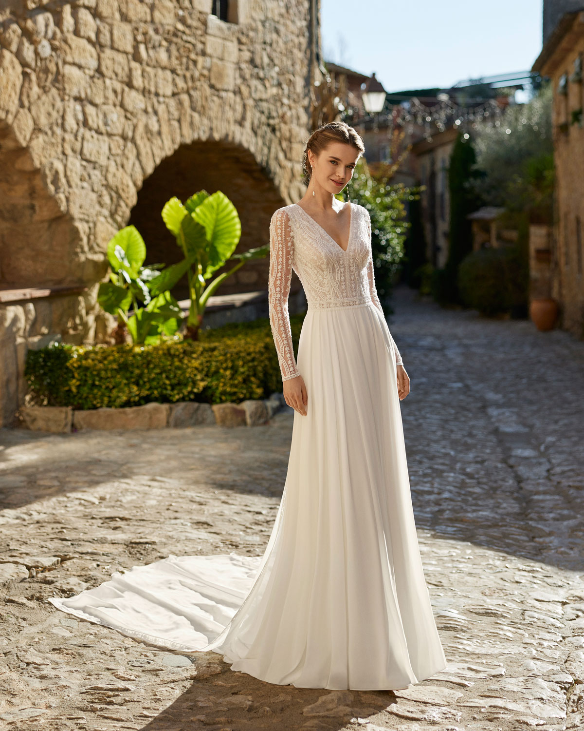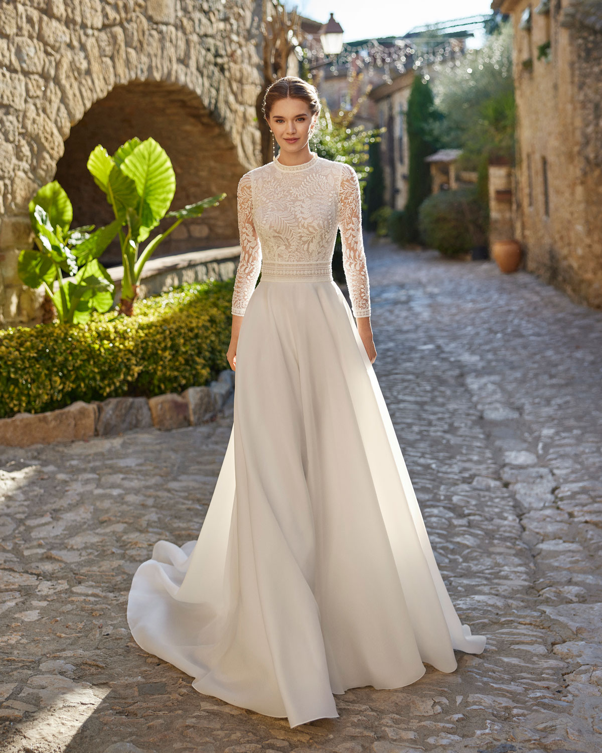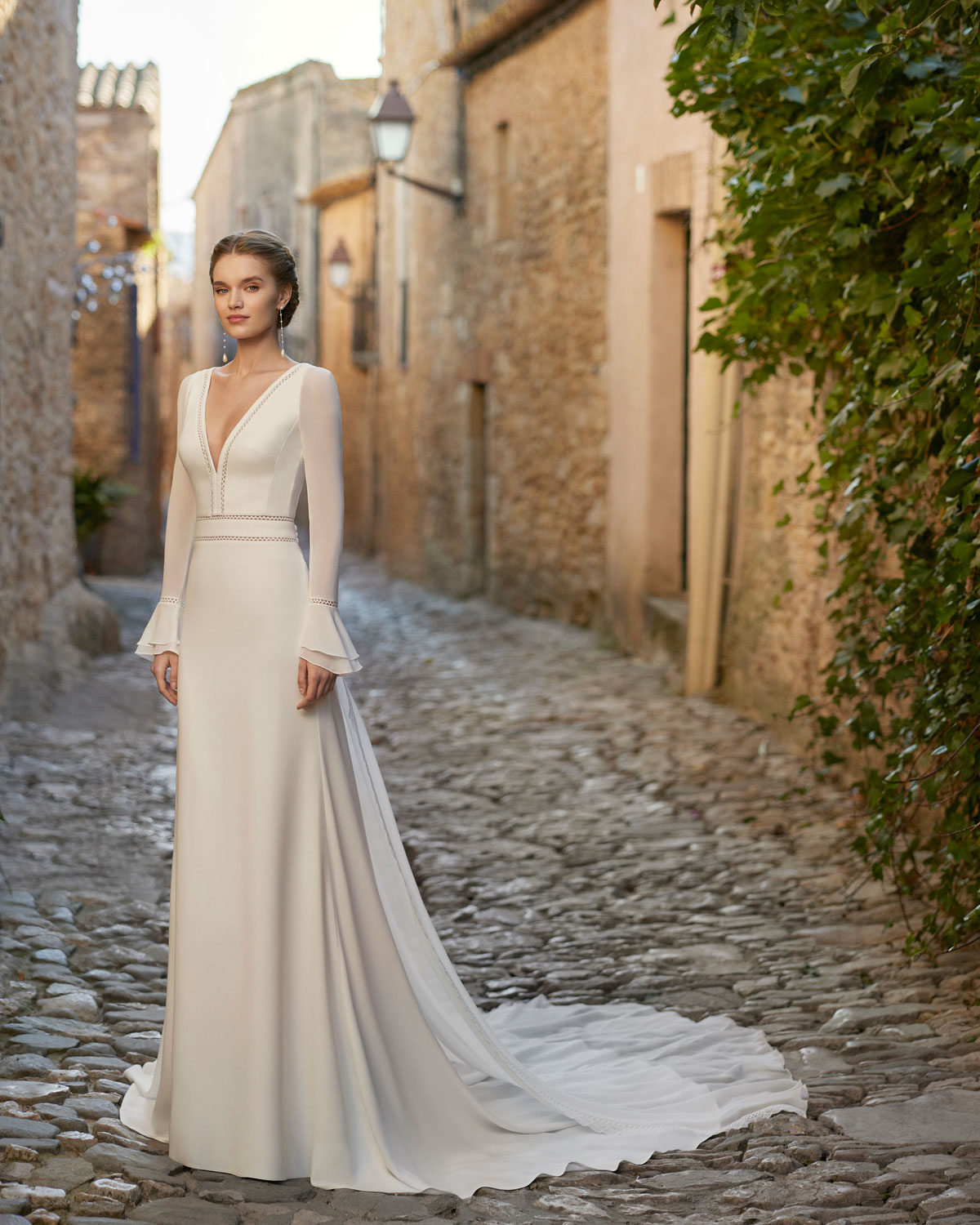 A novo corrente nupcial para um look menos ornamentado também se reflete na coleção 2023 da ROSA CLARÁ BOHÈME, que aposta pela SOBRIEDADE DE LINHAS com vestidos retos ou em A em georgette e crepe, que se destacam pelos detalhes únicos que realçam a silhueta e os decotes. O romantismo expressa-se em delicados vestidos em musselina de seda plissada. Uma novidade destacada é o espetacular vestido SEREIA DE RENDA com decote caicai, com motivos geométricos e florais em guipur com relevo ou com rendas de grandes medalhões que alargam as propostas da coleção. A versão mais sofisticada de BOHÈME encontra-se nos vestidos em A em organza vichy com corpos de RENDAS PROVENÇAIS ou de micropedras, que apaixonam pela sua delicadeza e elegância. |
