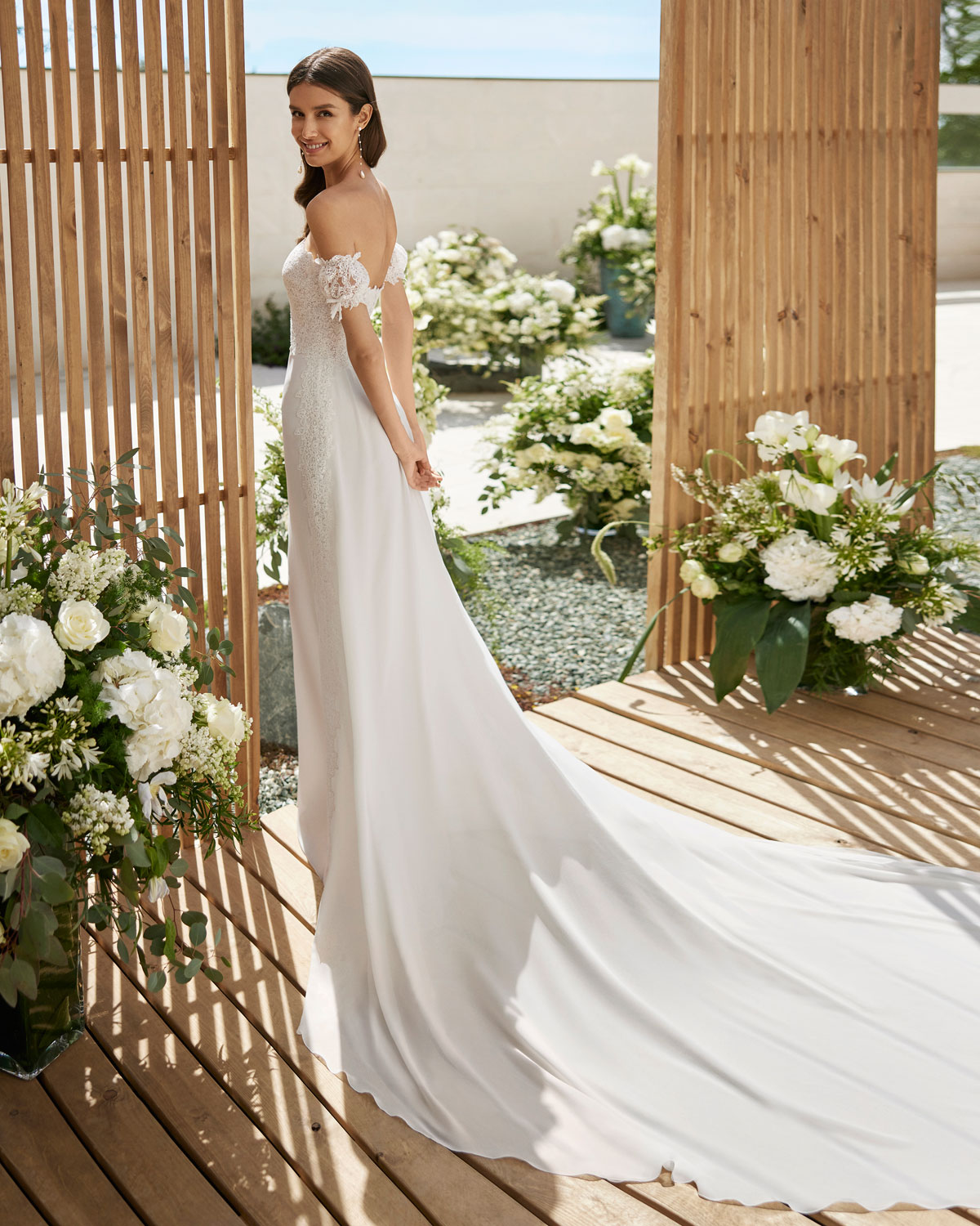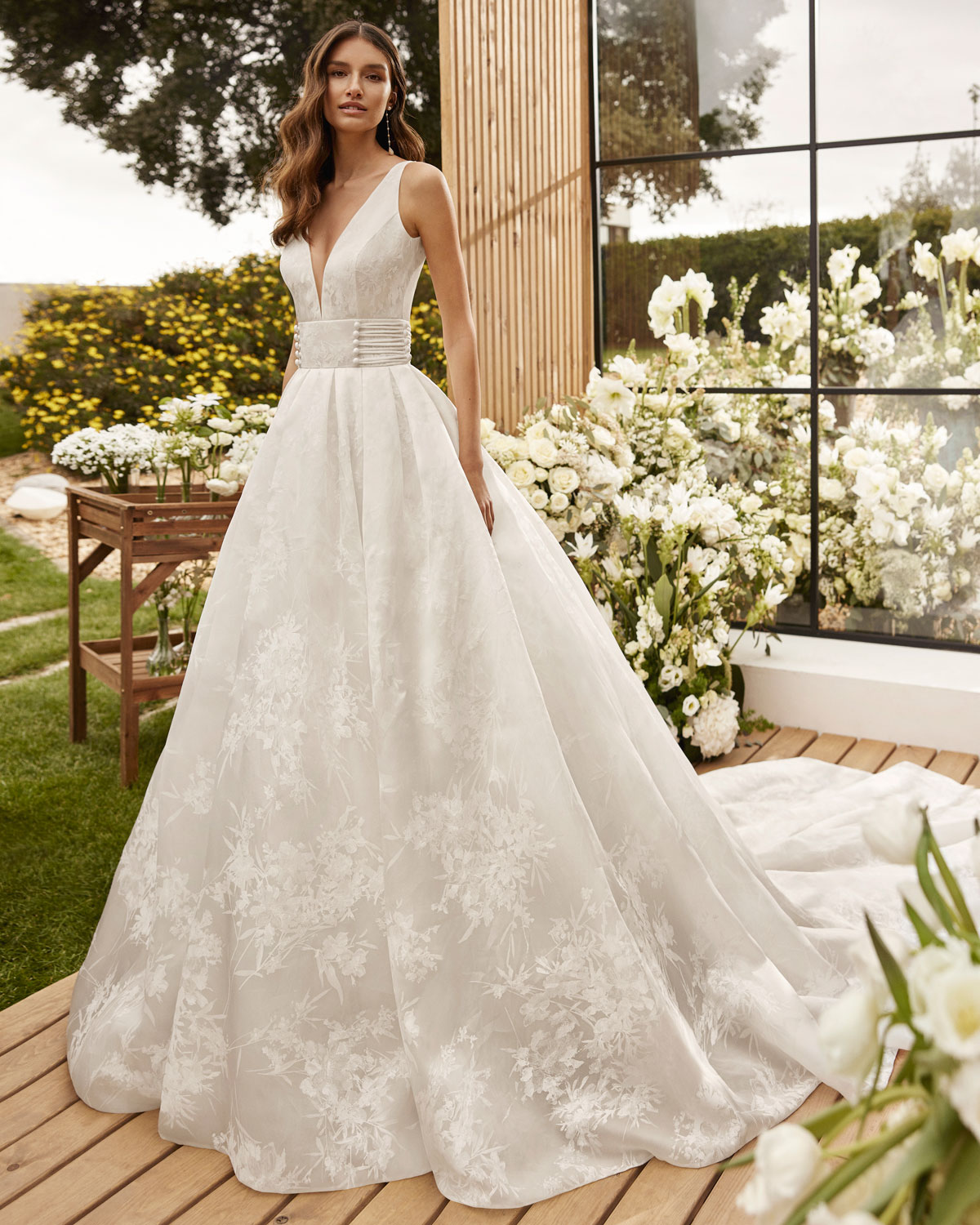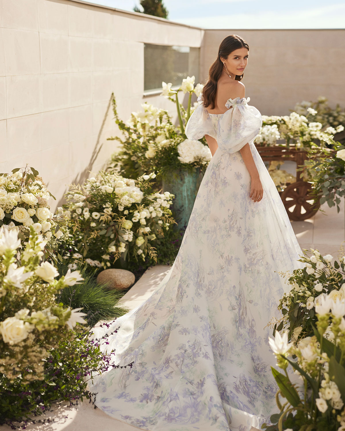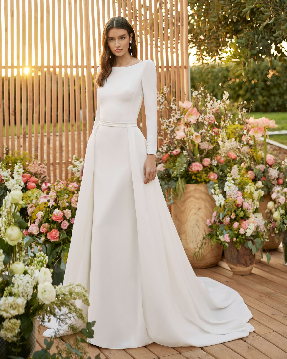 A ROSA CLARÁ COUTURE dirige-se à mulher contemporânea com VESTIDOS MIDI com saias de tule em franjas e caudas removíveis que são pura inspiração. Do decote caicai, podem combinar-se com os novos DECOTES ENVOLVENTES removíveis e delicados, mangas abalonadas que a assinatura introduz para reforçar a tendência MULTILOOK, que permite exibir dois looks diferentes na cerimónia e na festa após a mesma. |