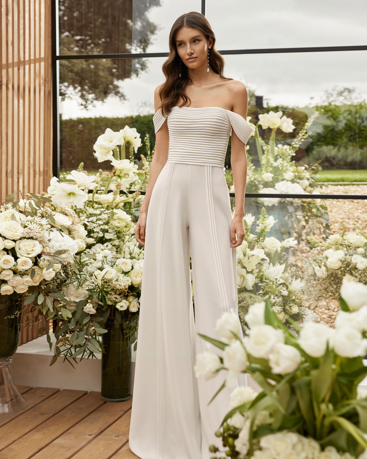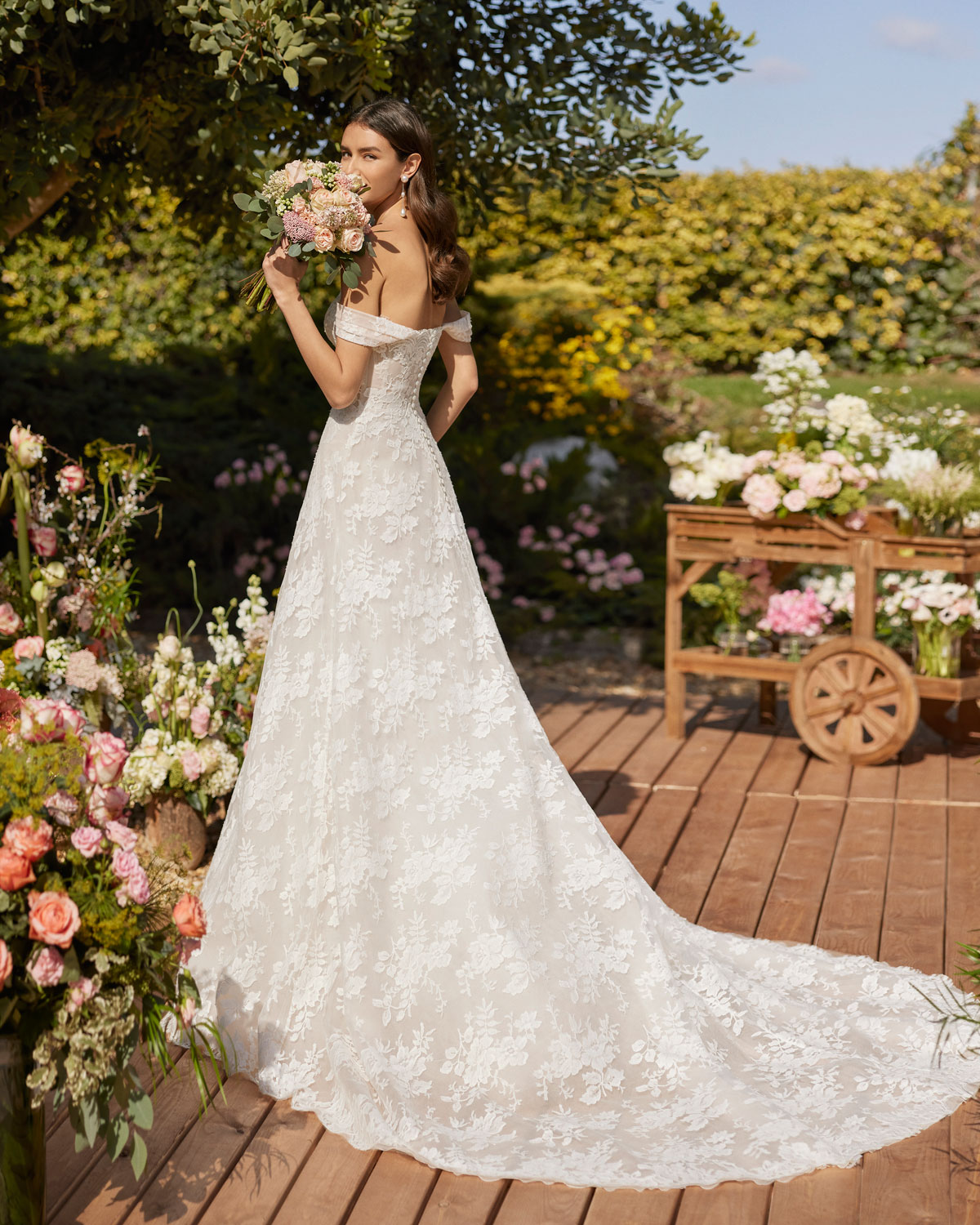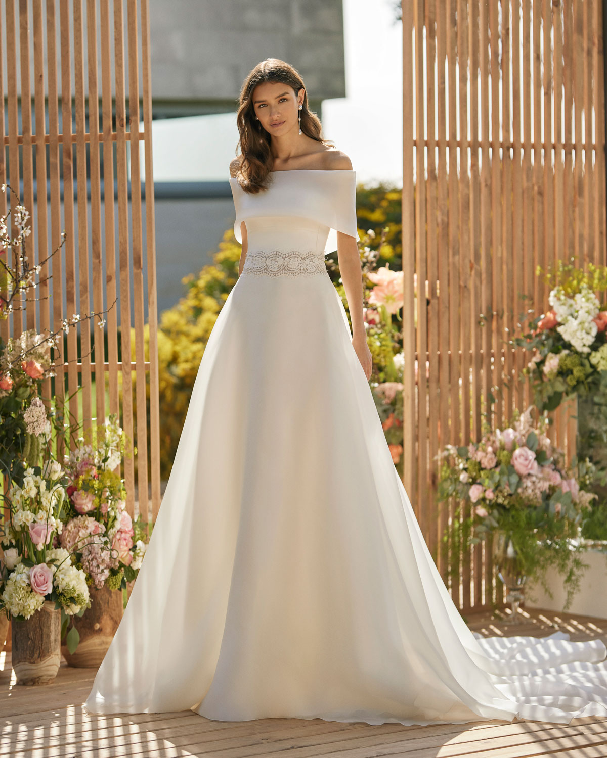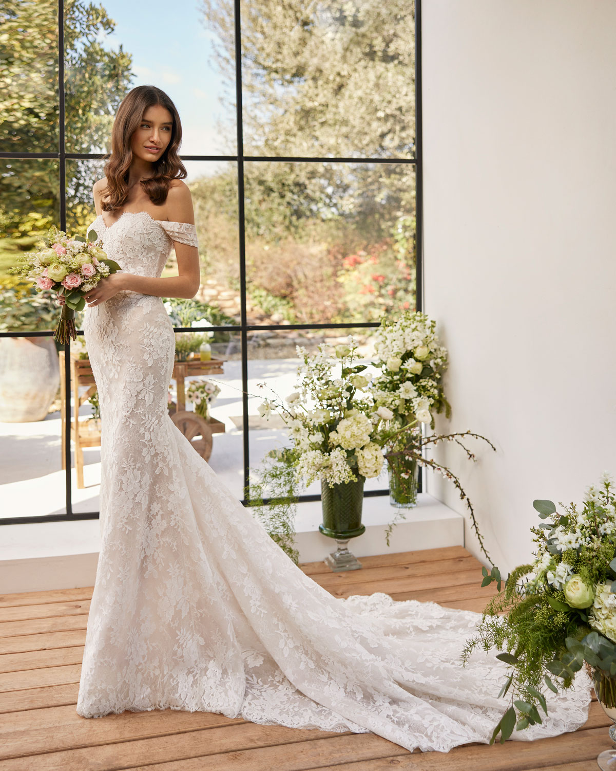 A ROSA CLARÁ COUTURE dirige-se à mulher contemporânea com VESTIDOS MIDI com saias de tule em franjas e caudas removíveis que são pura inspiração. Do decote caicai, podem combinar-se com os novos DECOTES ENVOLVENTES removíveis e delicados, mangas abalonadas que a assinatura introduz para reforçar a tendência MULTILOOK, que permite exibir dois looks diferentes na cerimónia e na festa após a mesma. |
